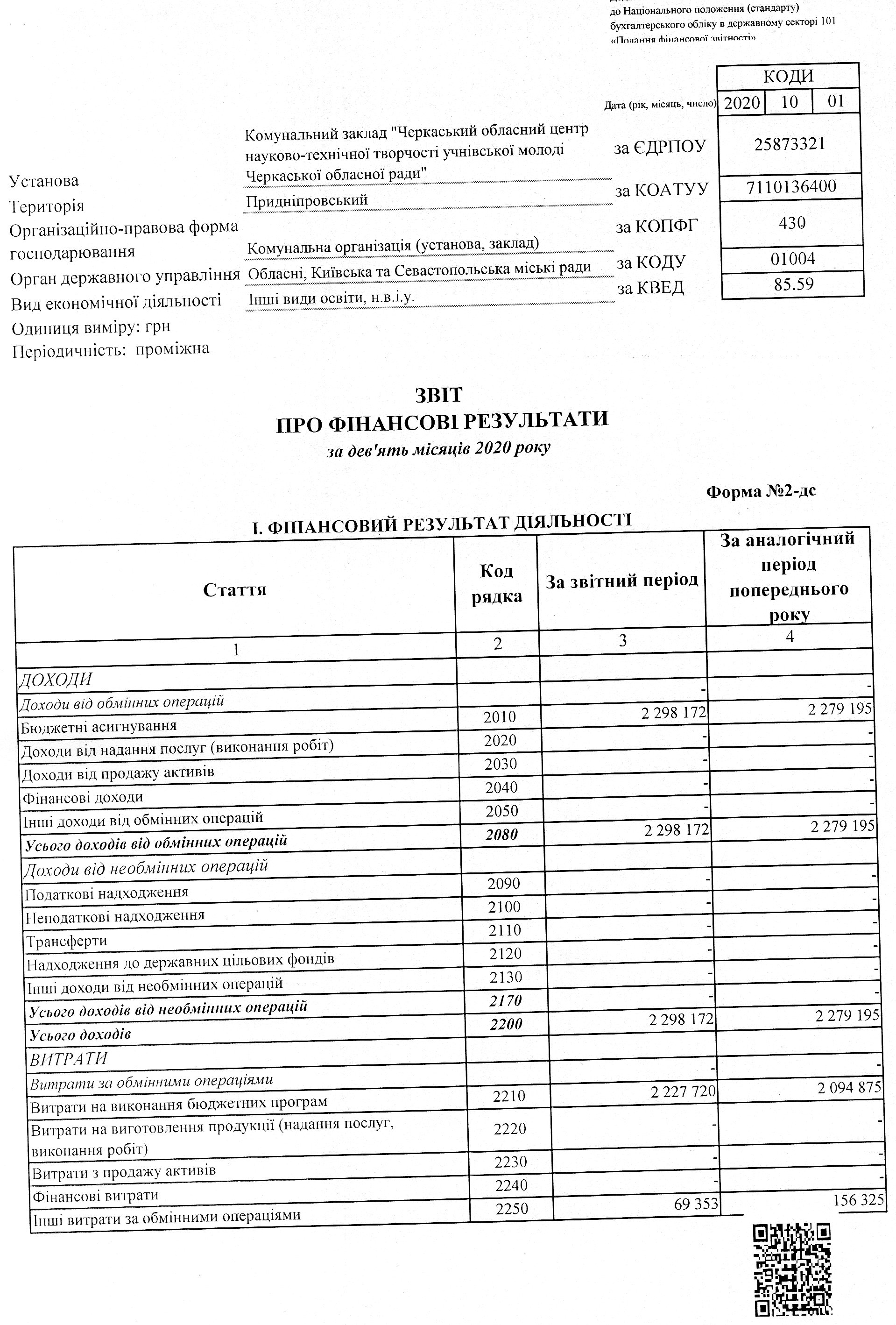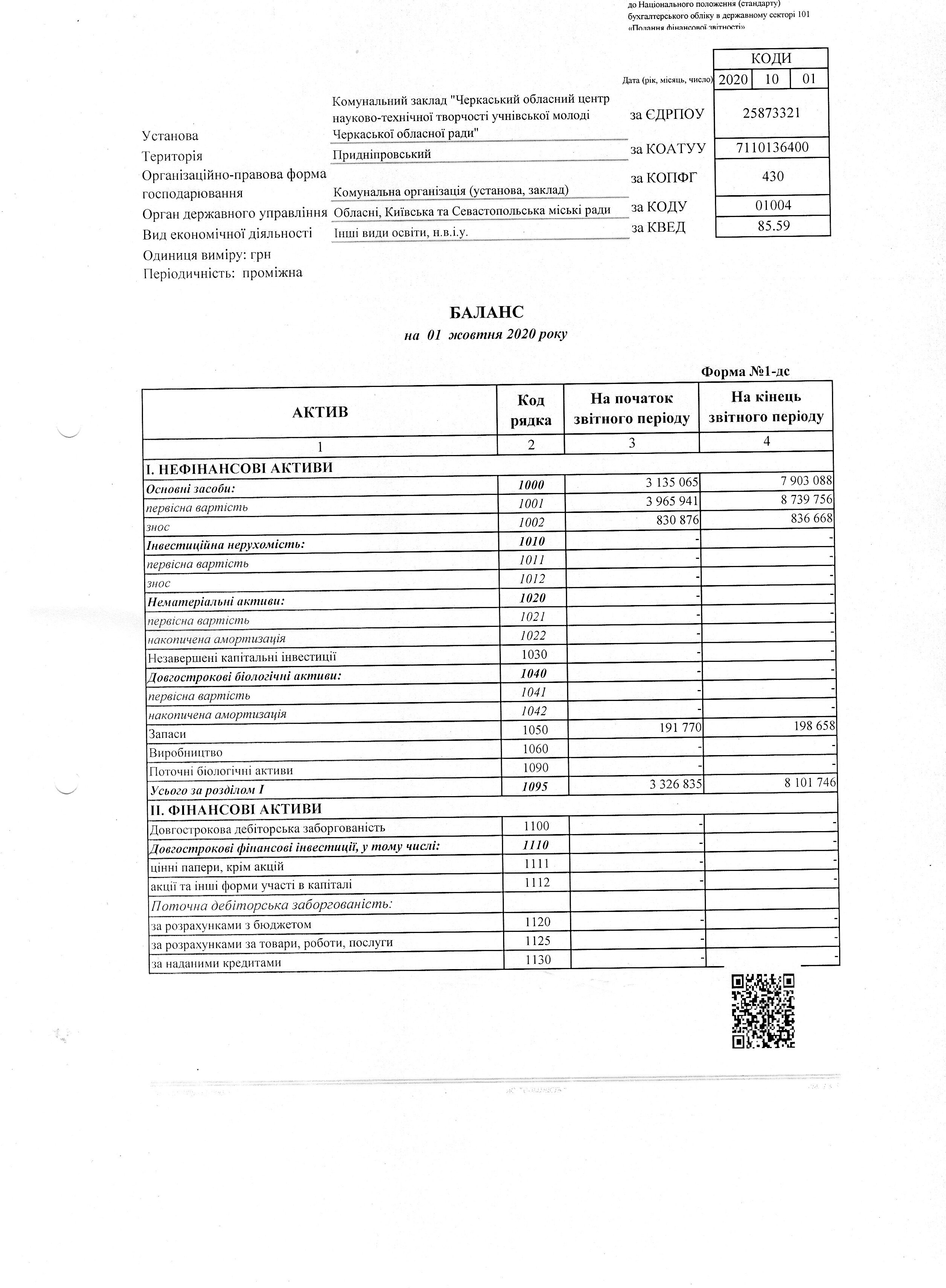 Баланс на 01 жовтня 2020 року
