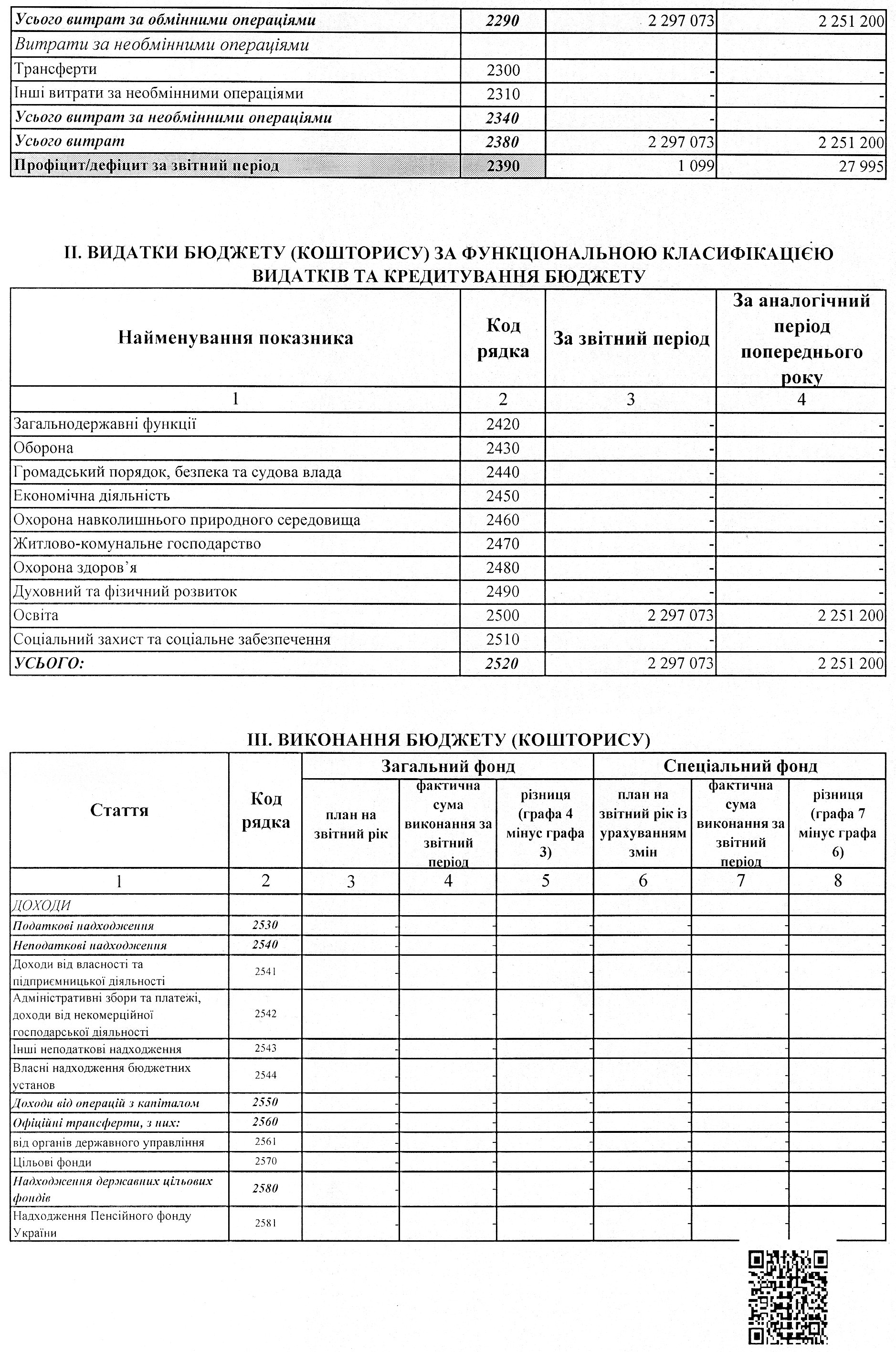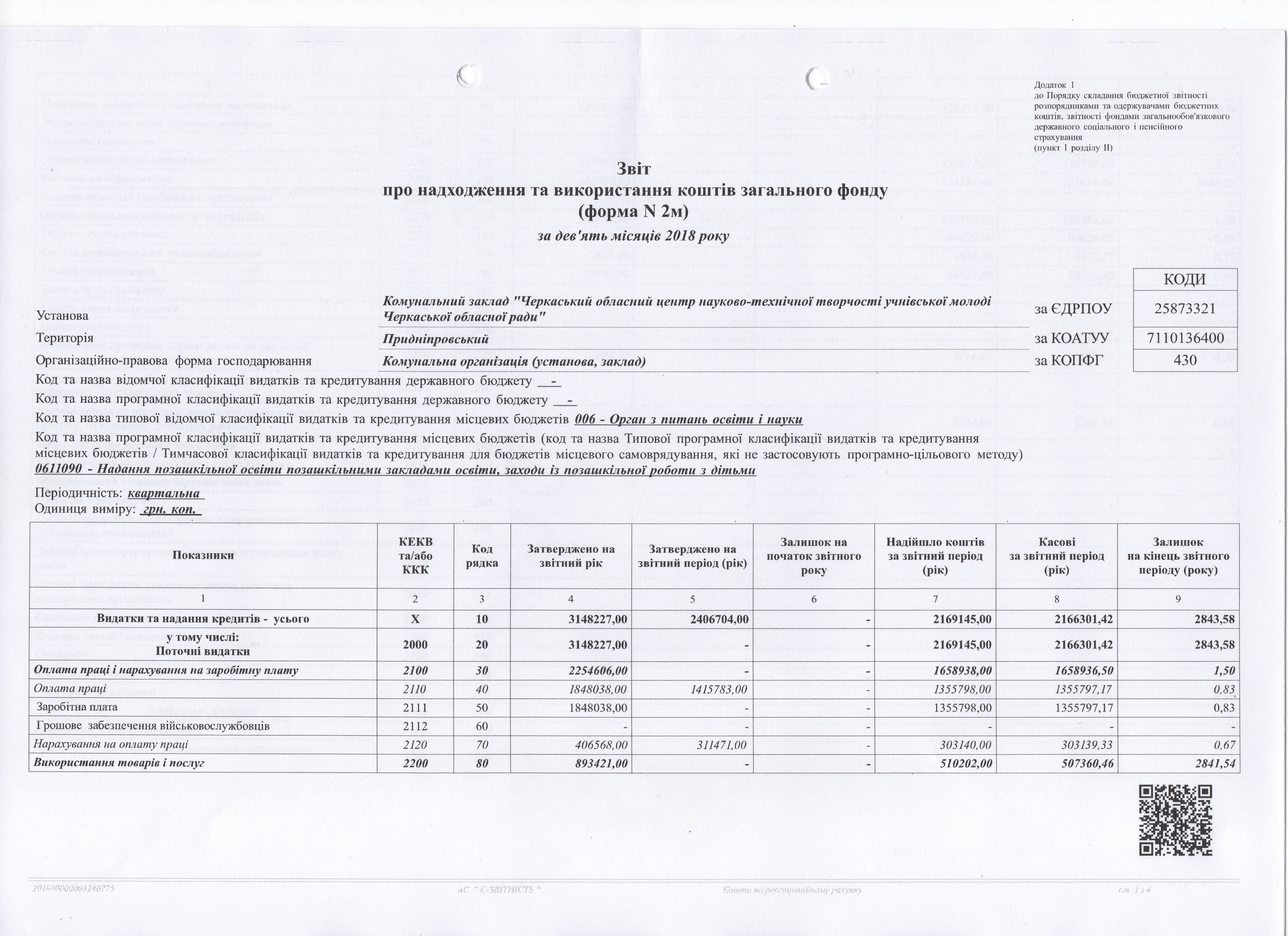 Звіт про надходження та використання коштів загального фонду