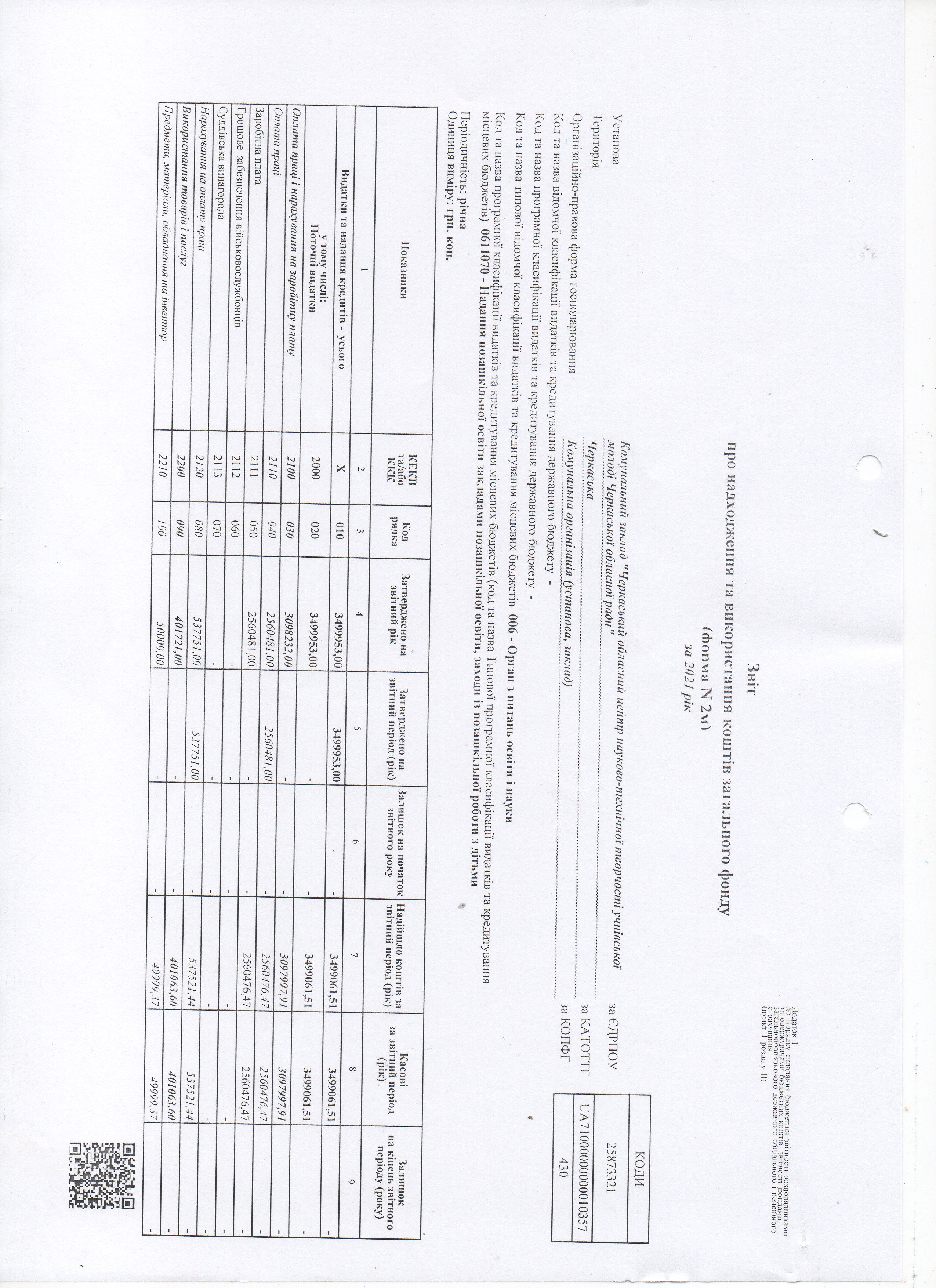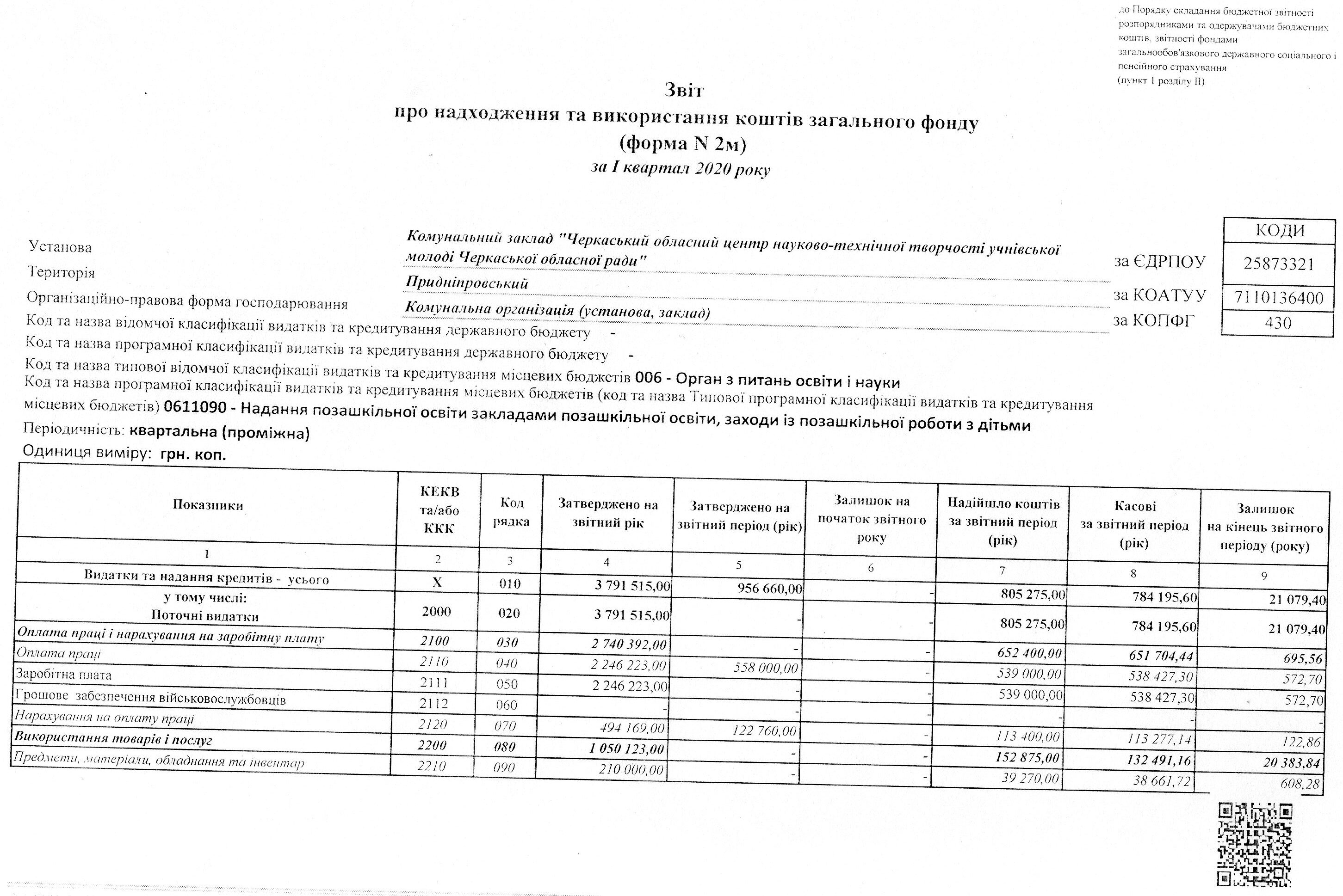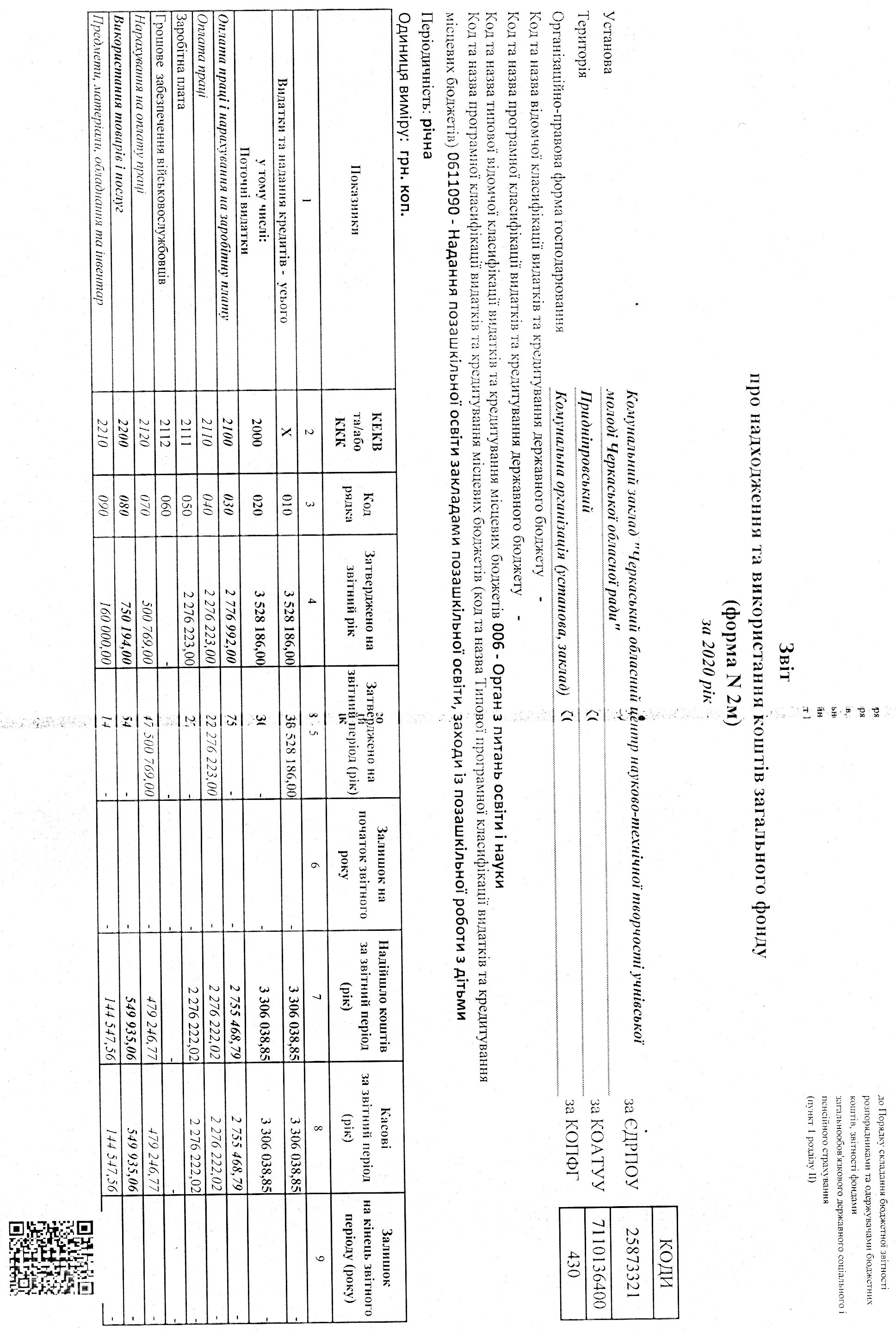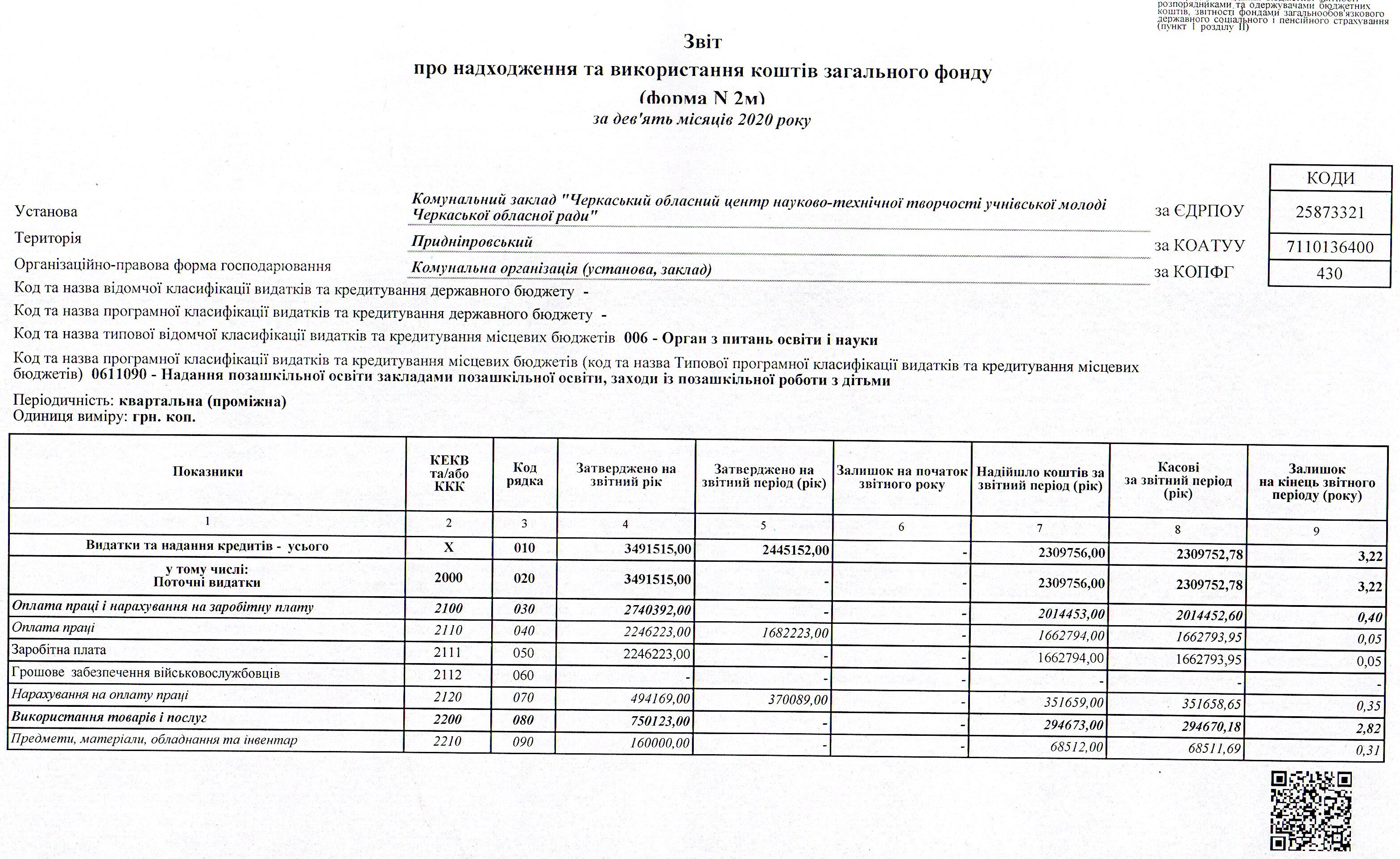 Звіт про надходження та використання коштів загального фонду (форма N 2м) за 2020 рік