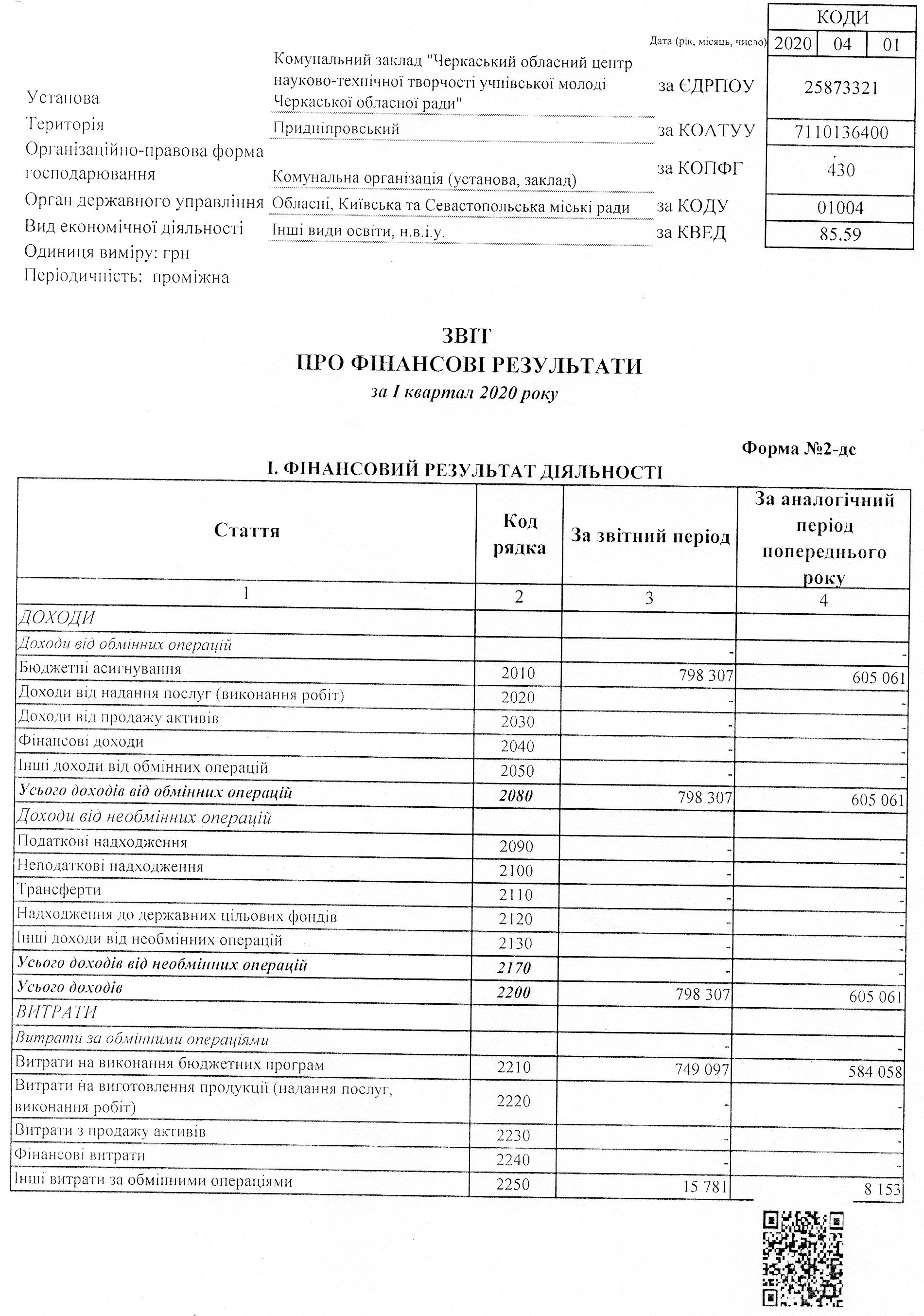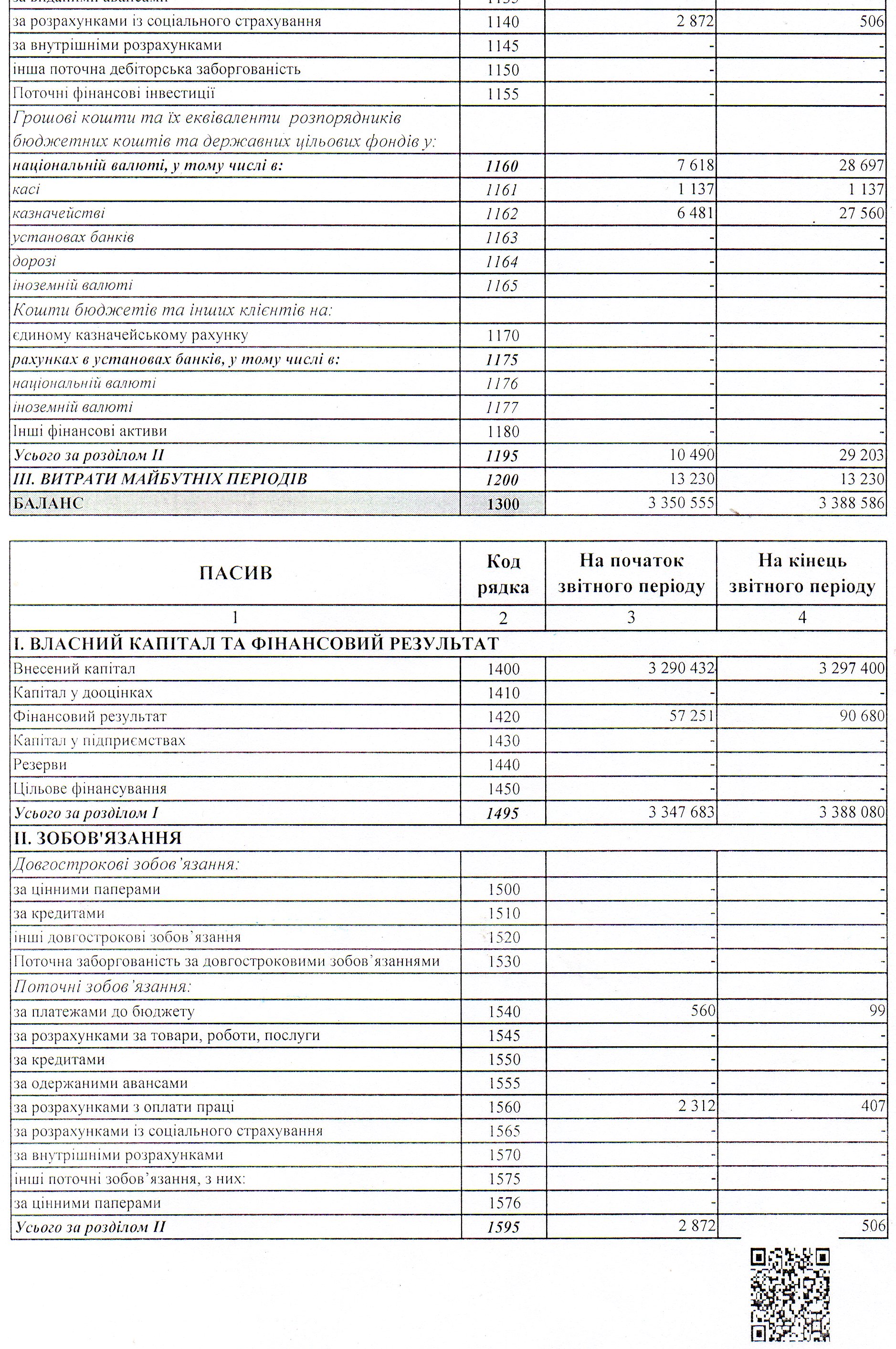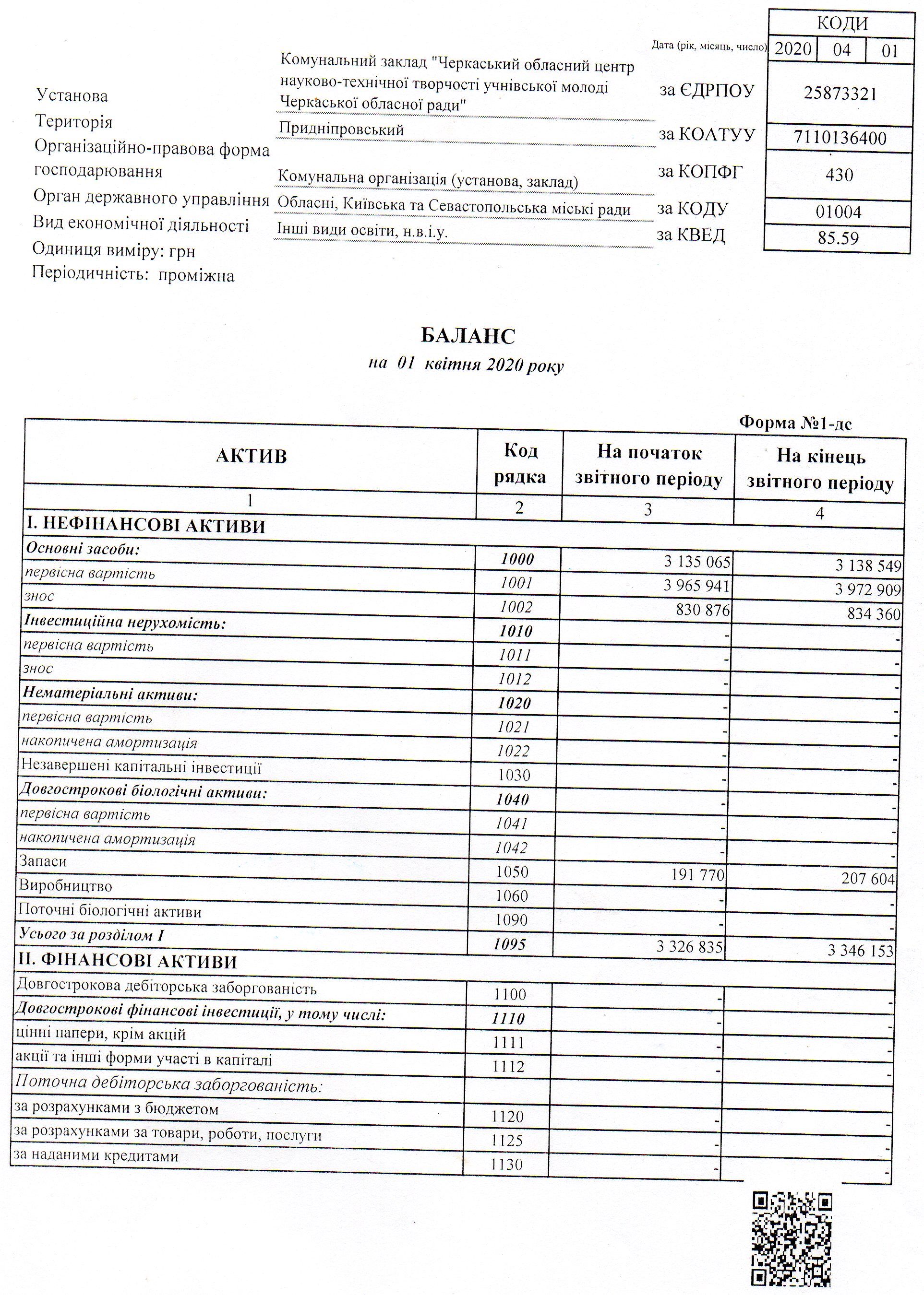 Баланс на 01 квітня 2020 року