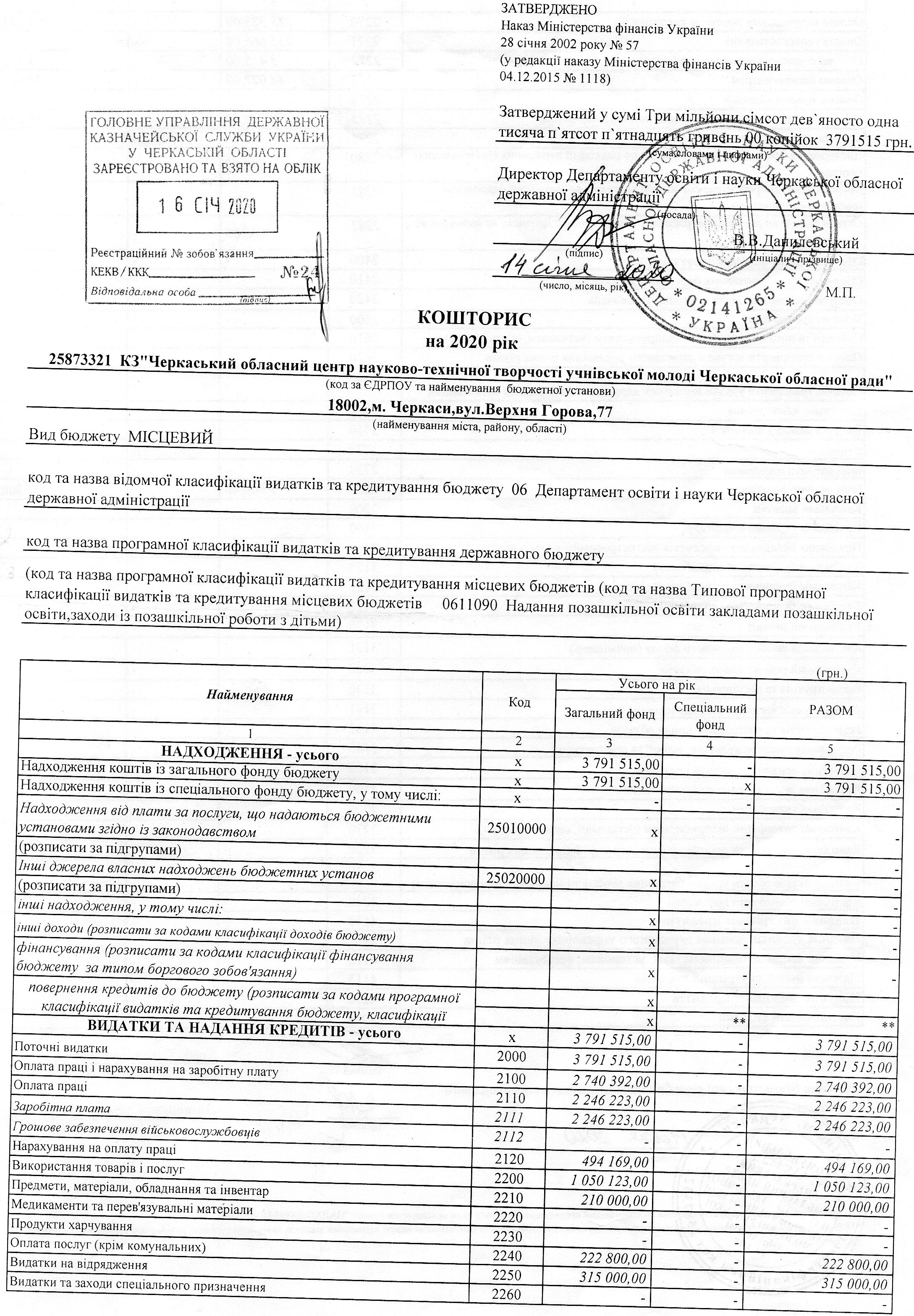 Кошторис на 2025 рік