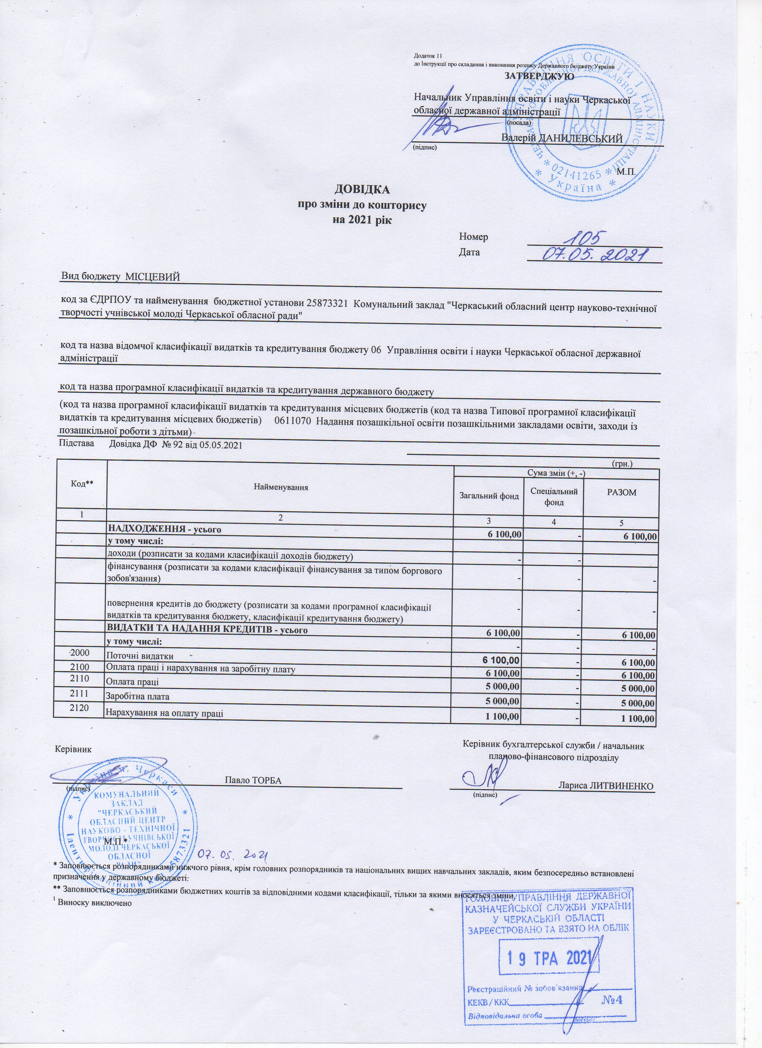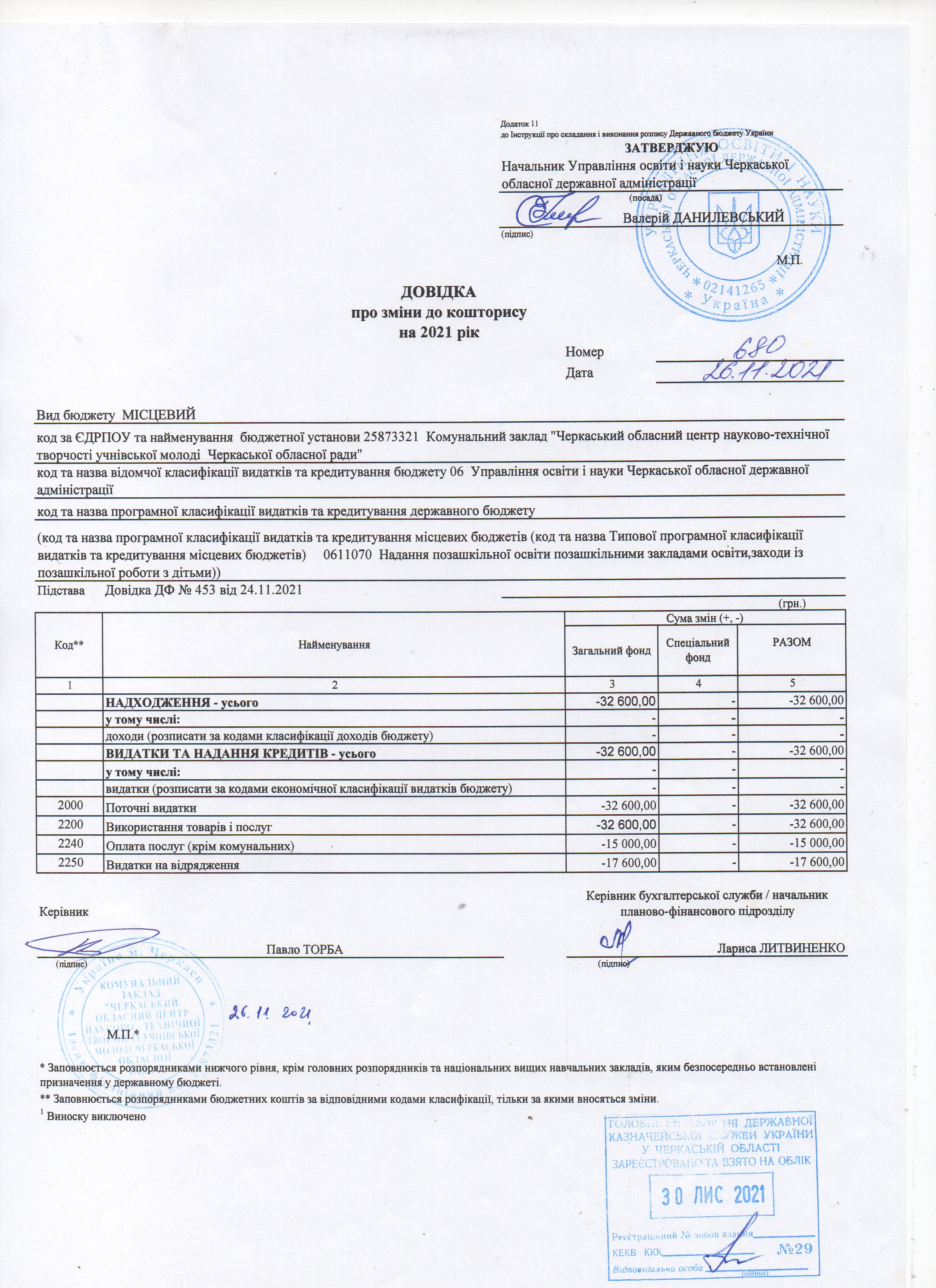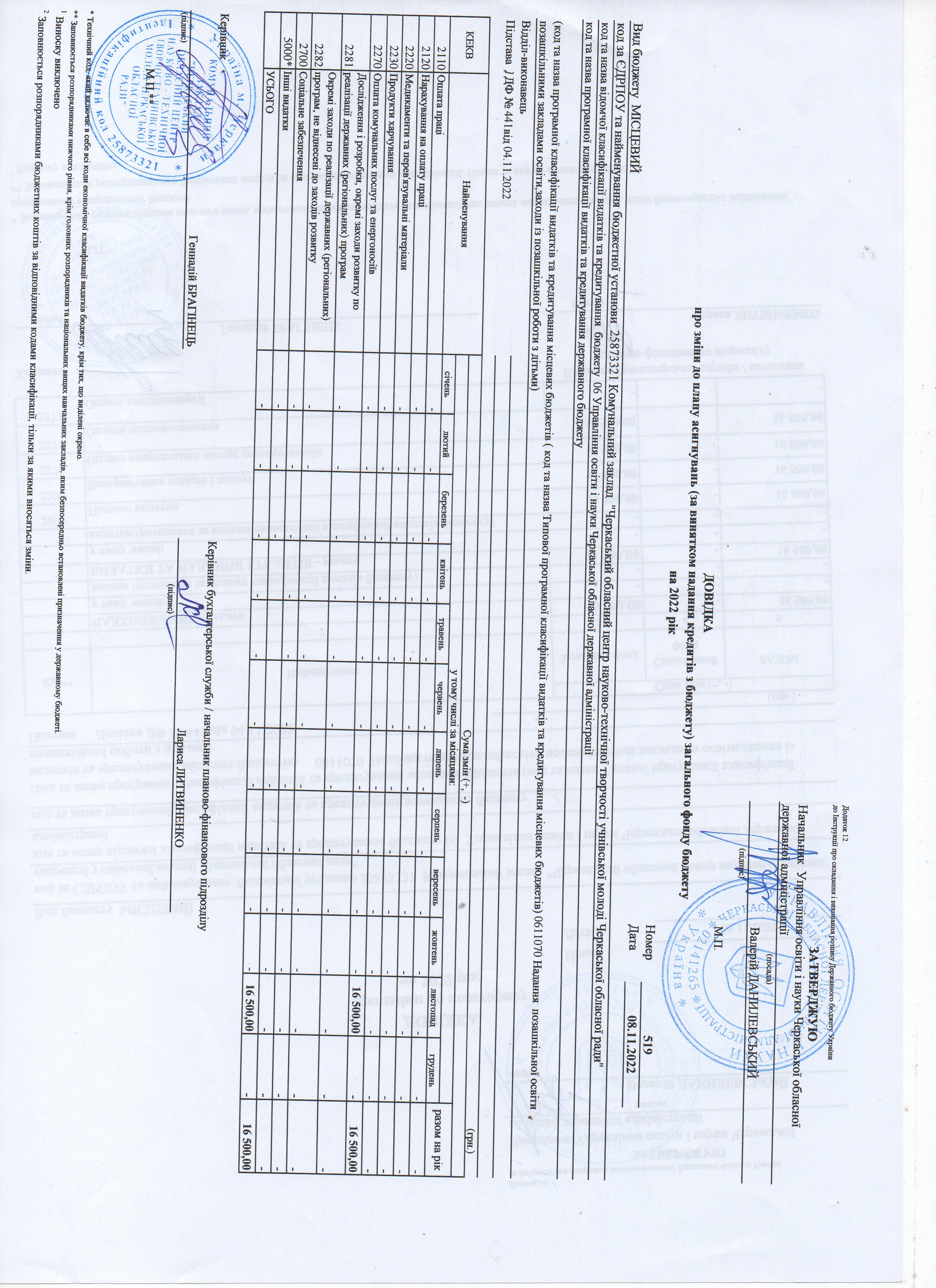 Довідки про зміни до кошторису