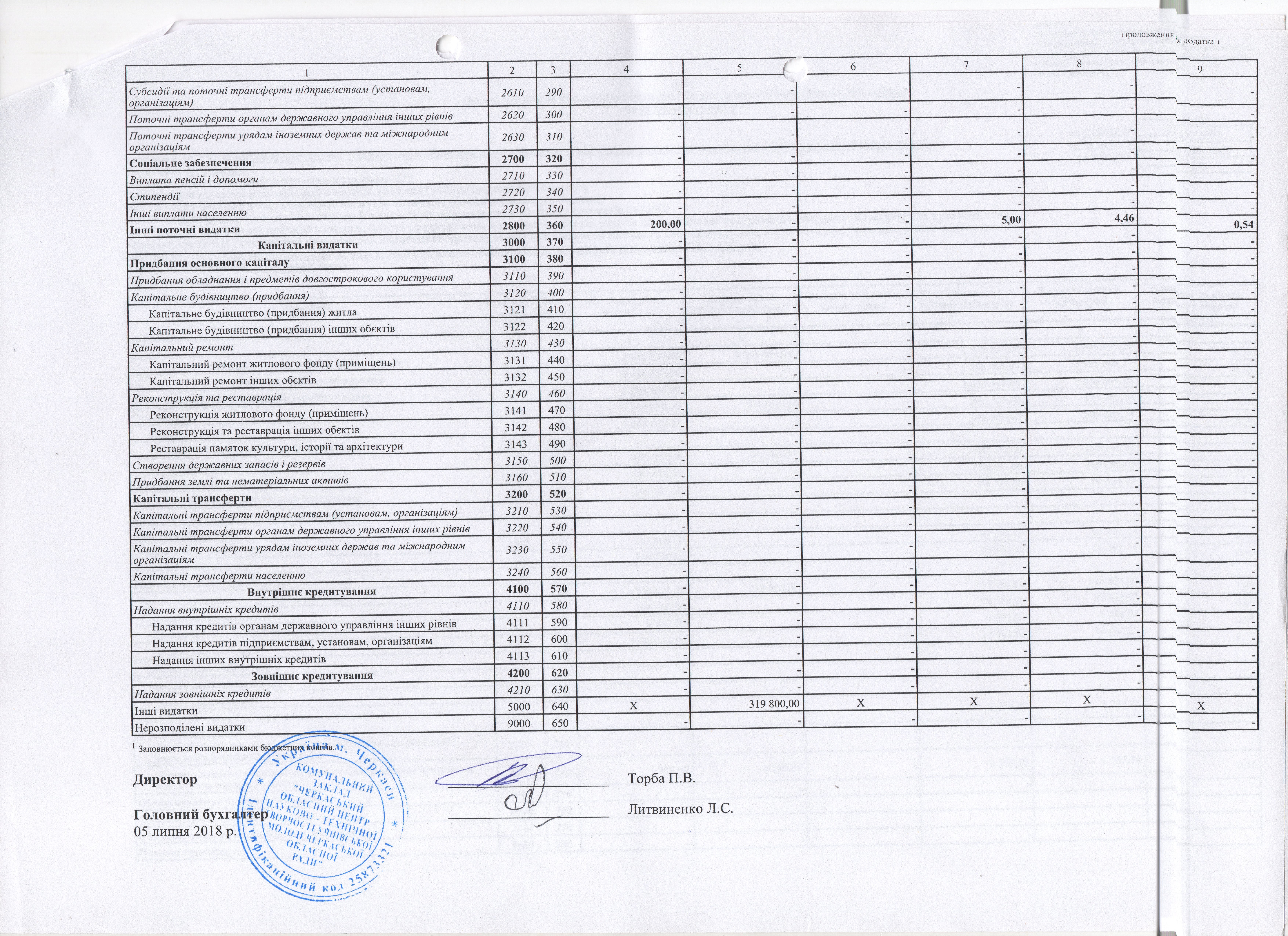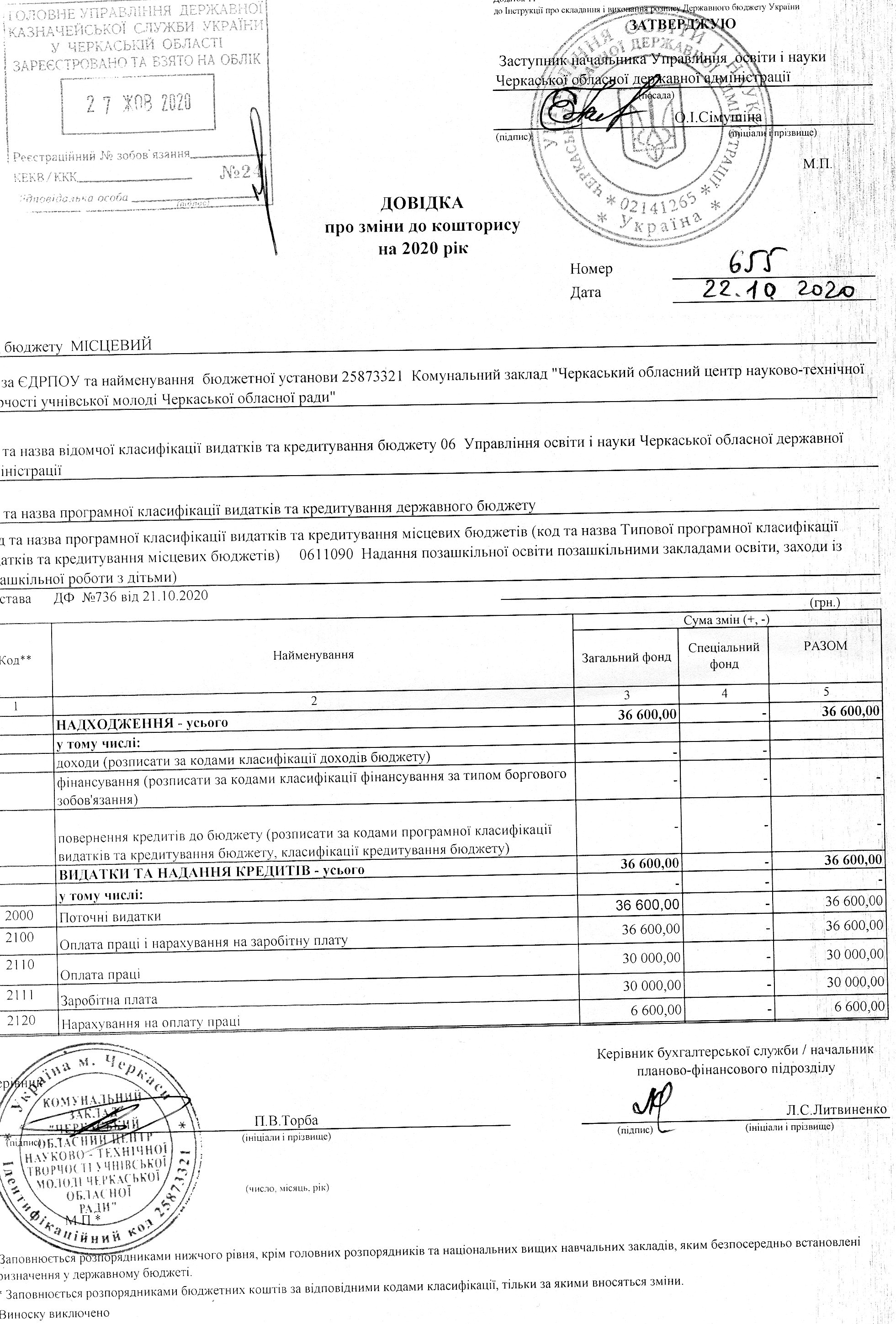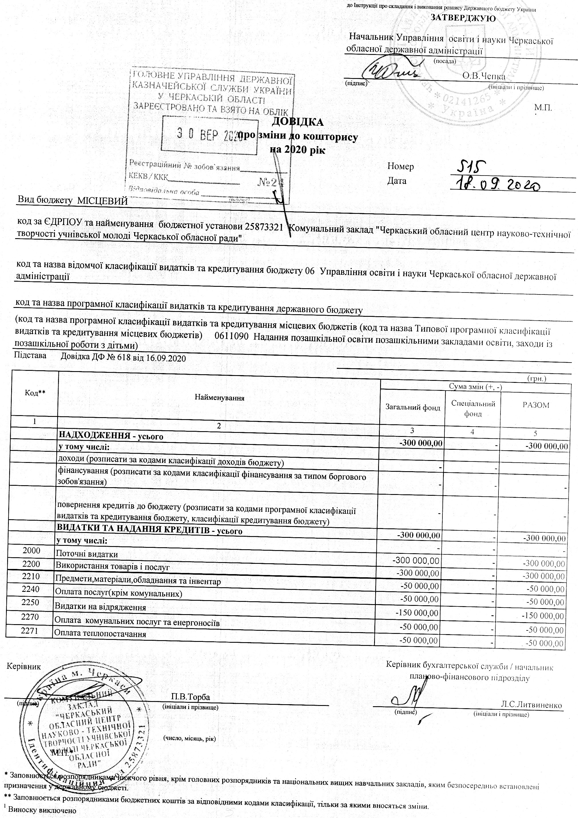 Довідки про зміни до кошторису