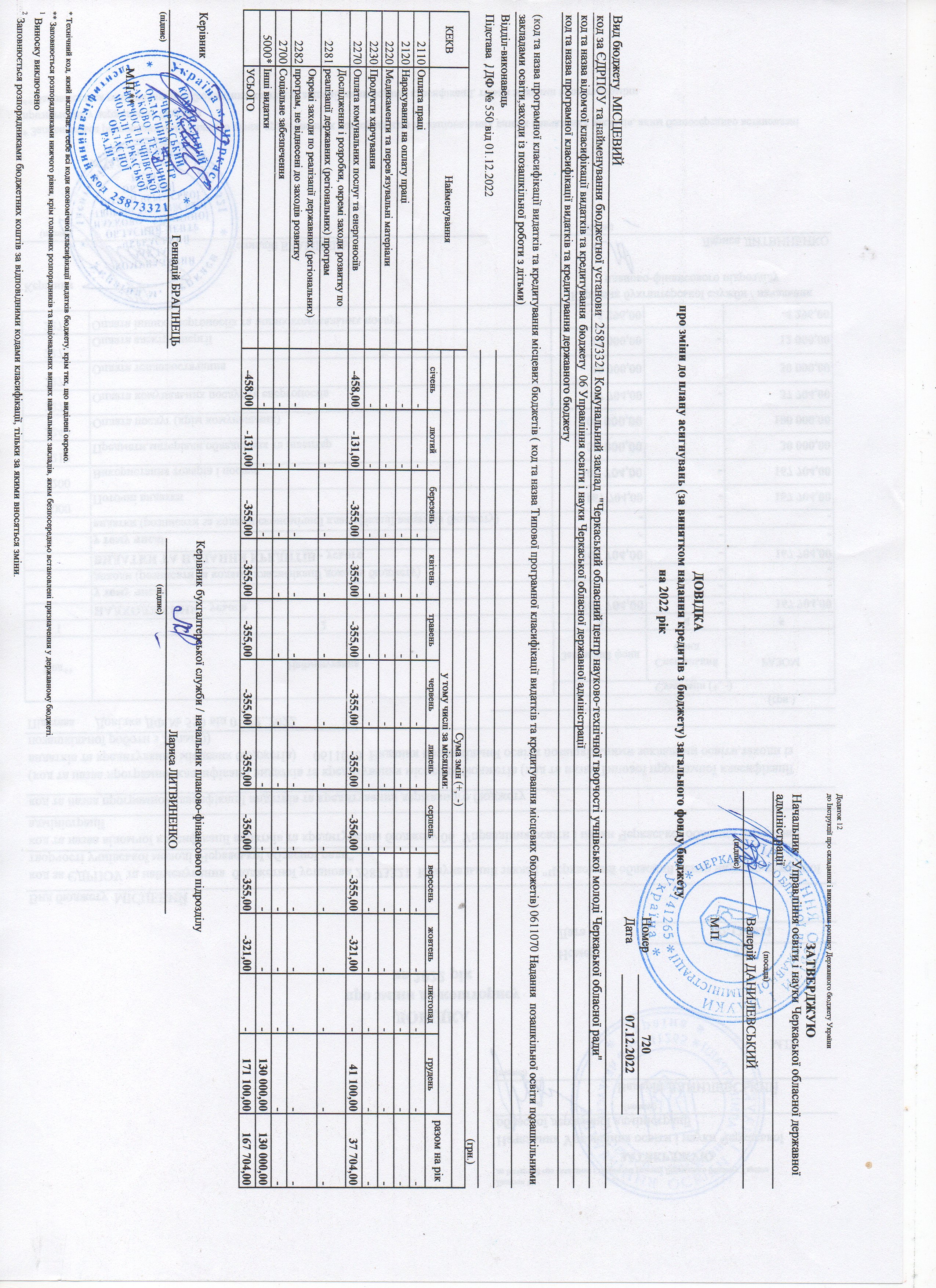 ДОВІДКА про зміни до кошторису на 2022 рік