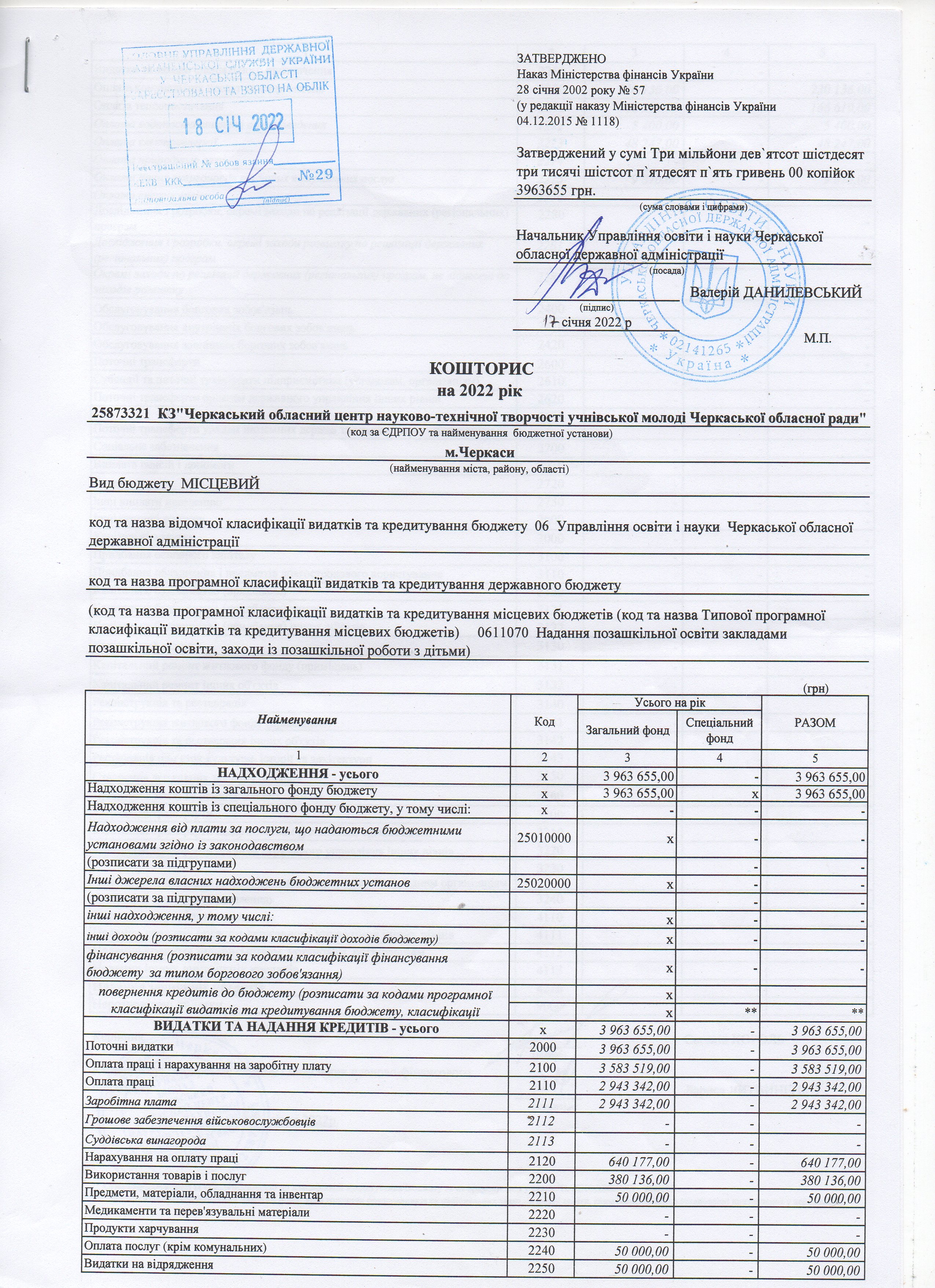 Кошторис на 2026 рік
