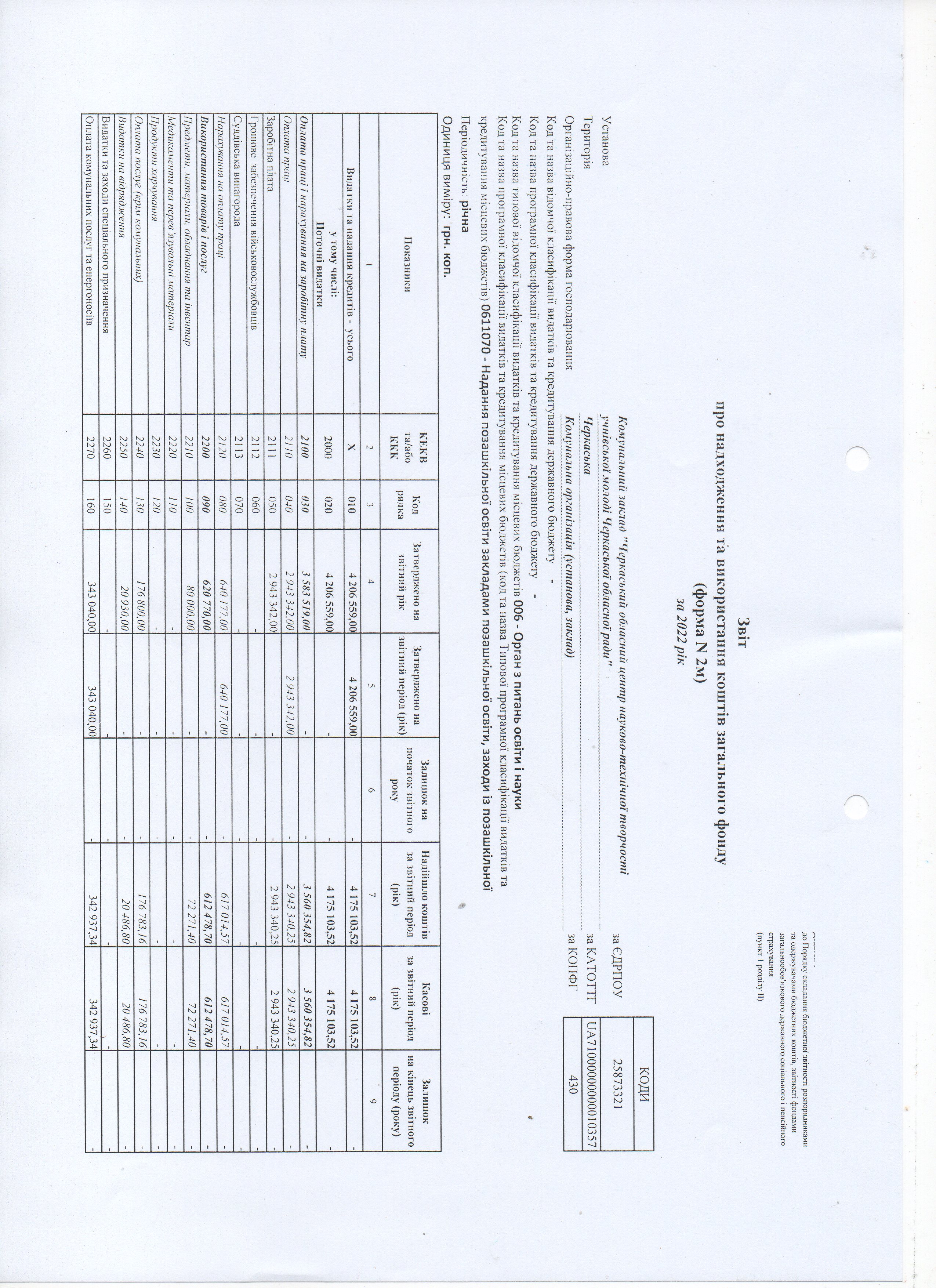 Звіт про надходження та використання коштів загального фонду (форма N 2м) за 2022 рік)
