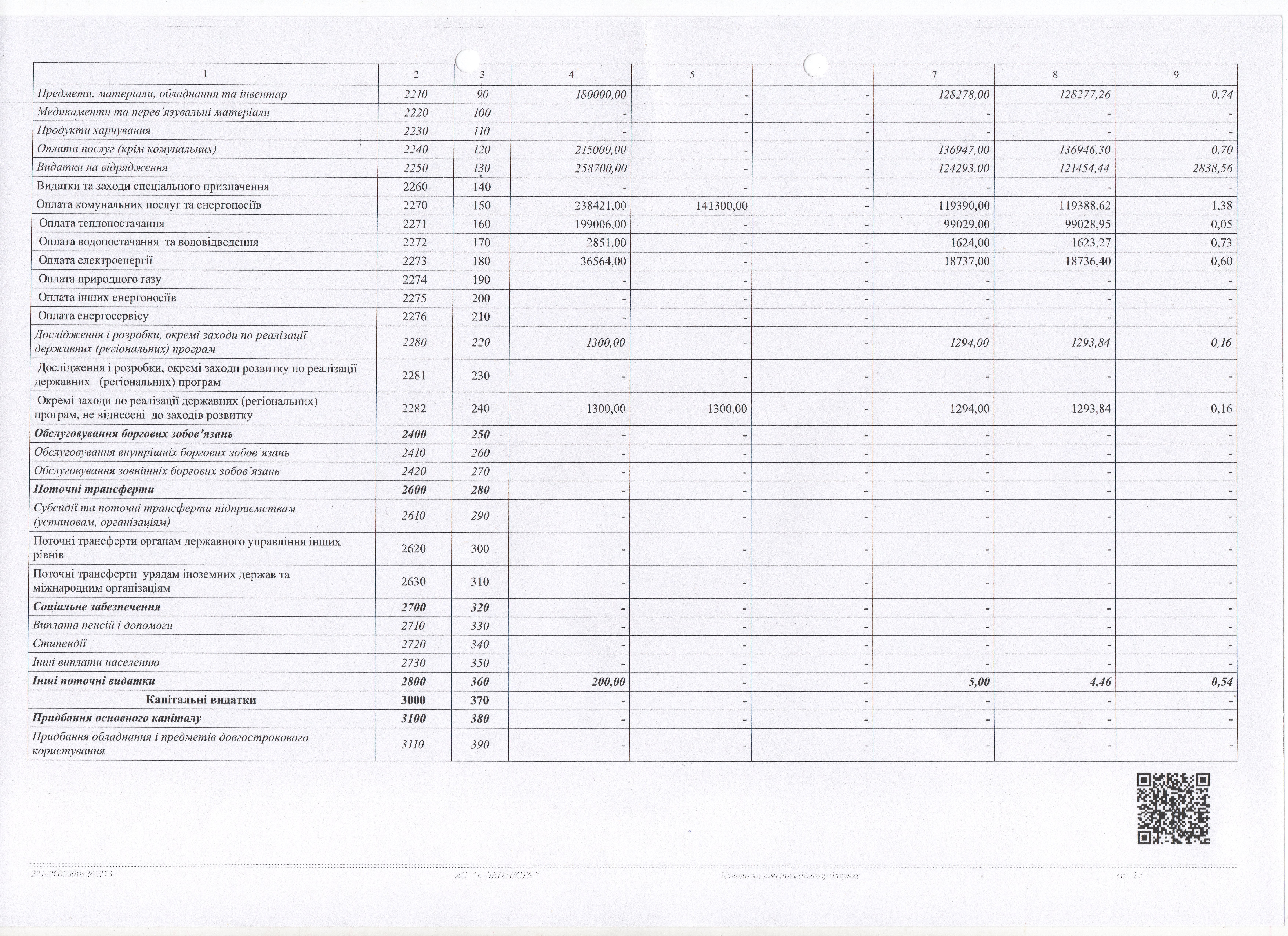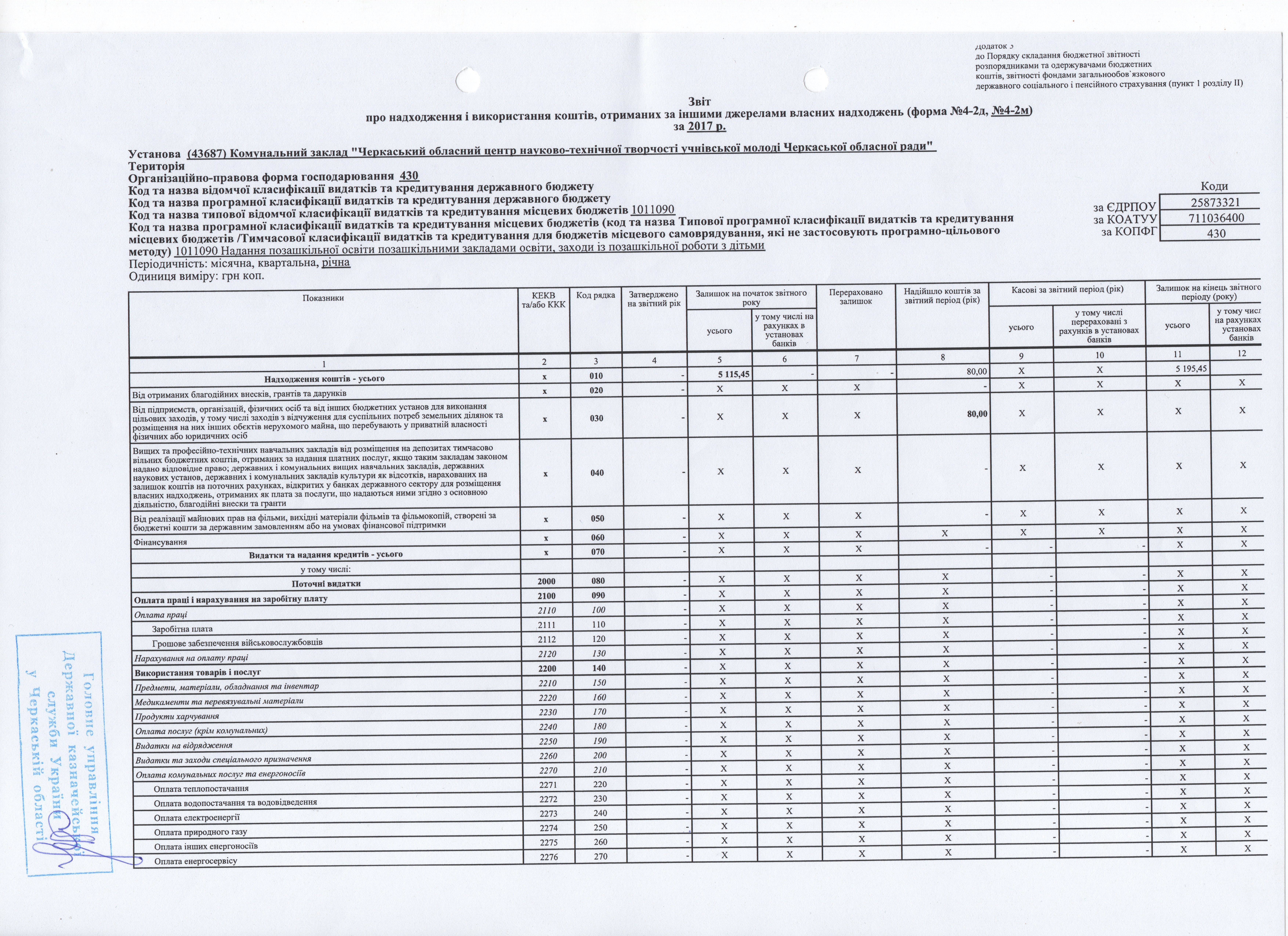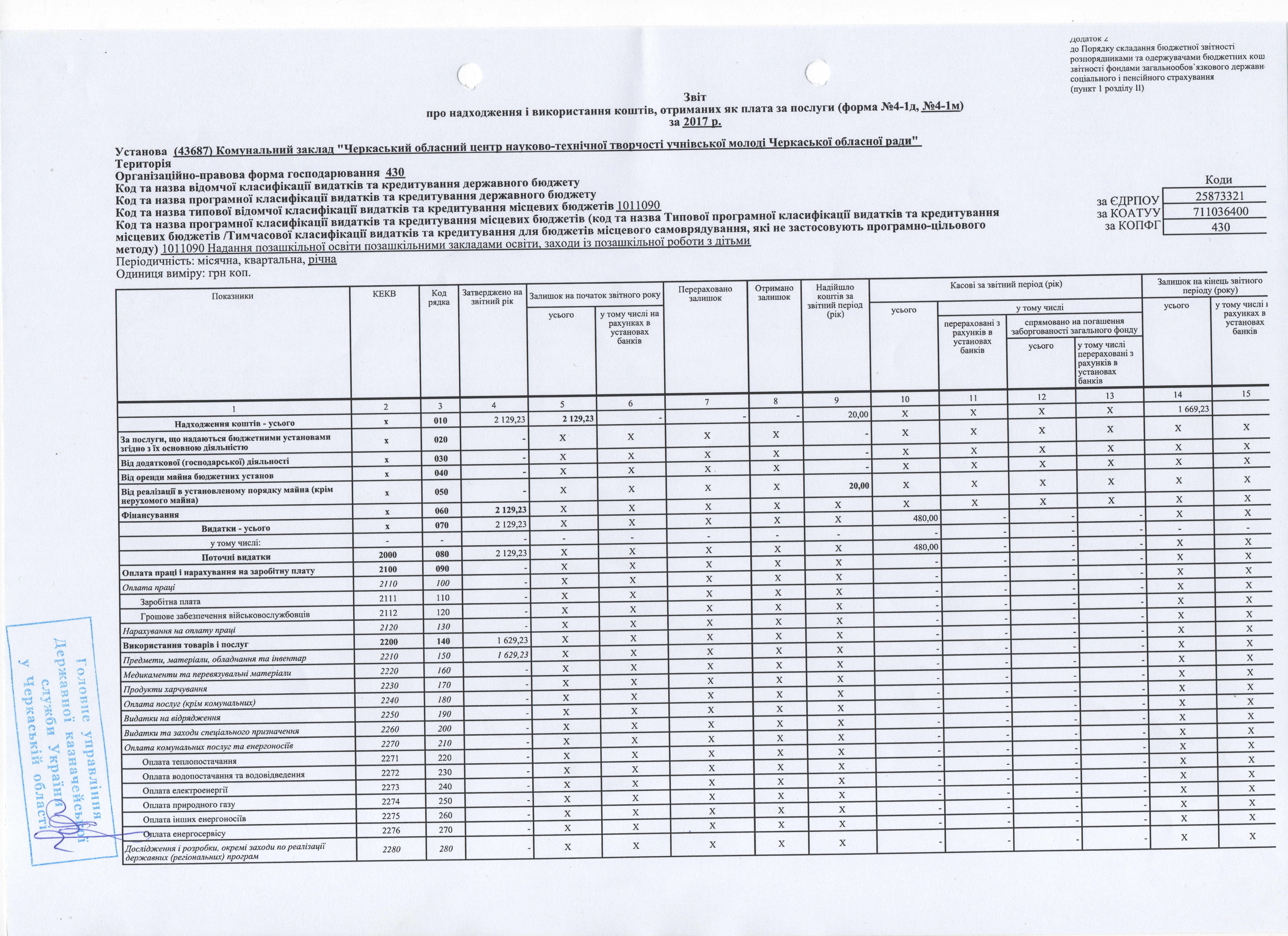 Звіт про надходження і використання коштів, отриманих як плата за послуги 2017 р