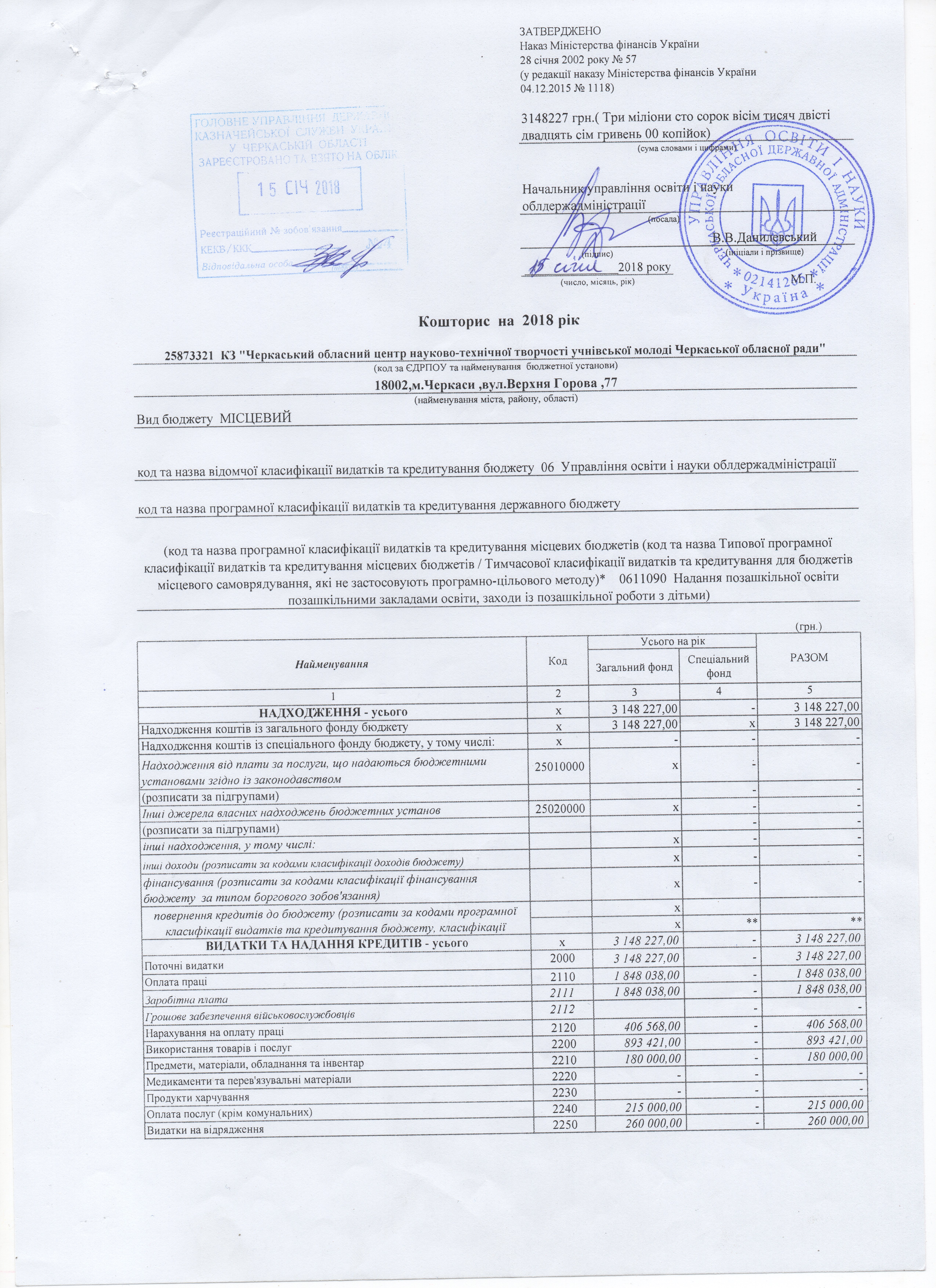 Кошторис на 2017 рік