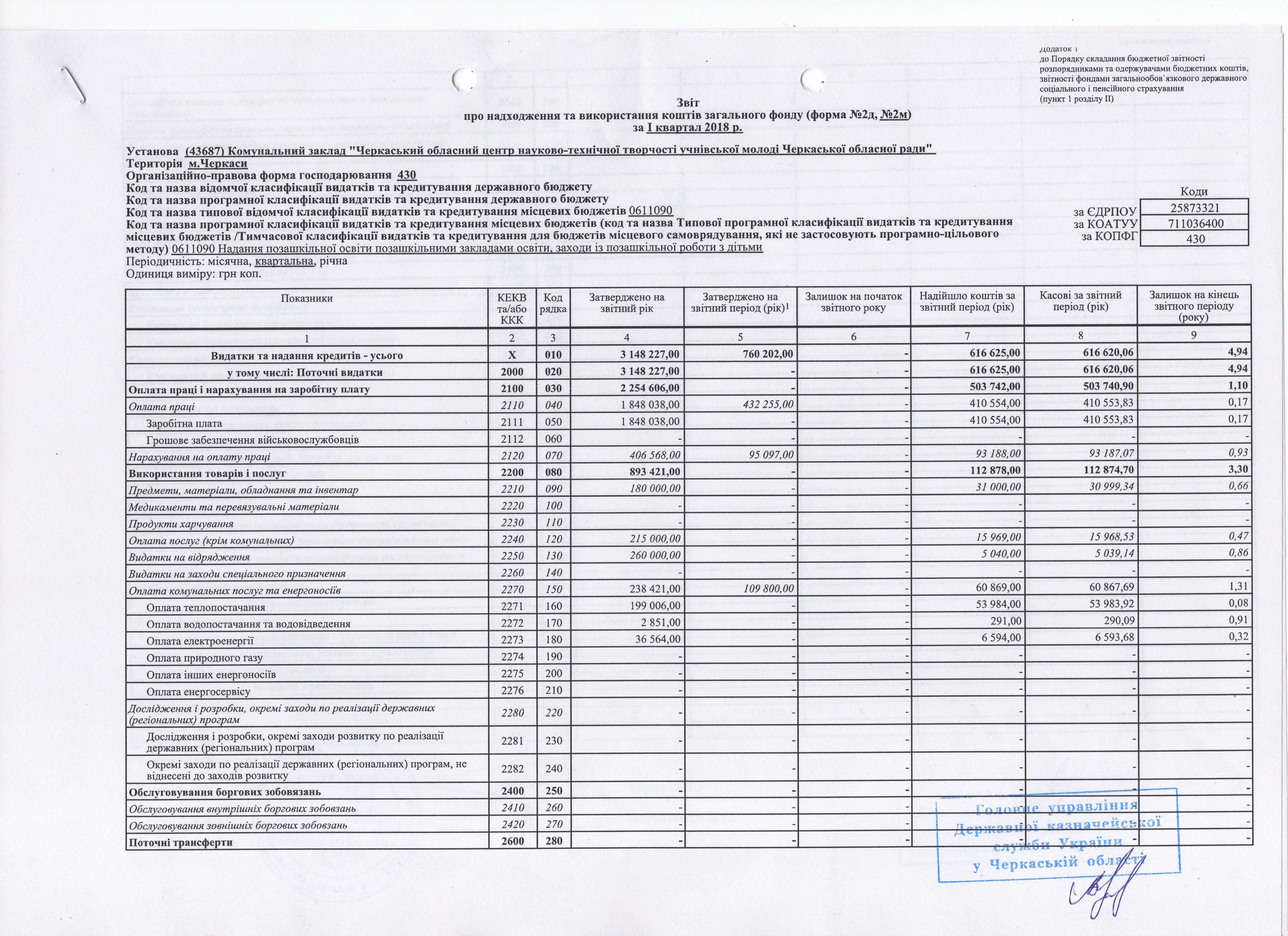 Звіт про надходження і використання коштів загального фонду за І квартал 2018 р