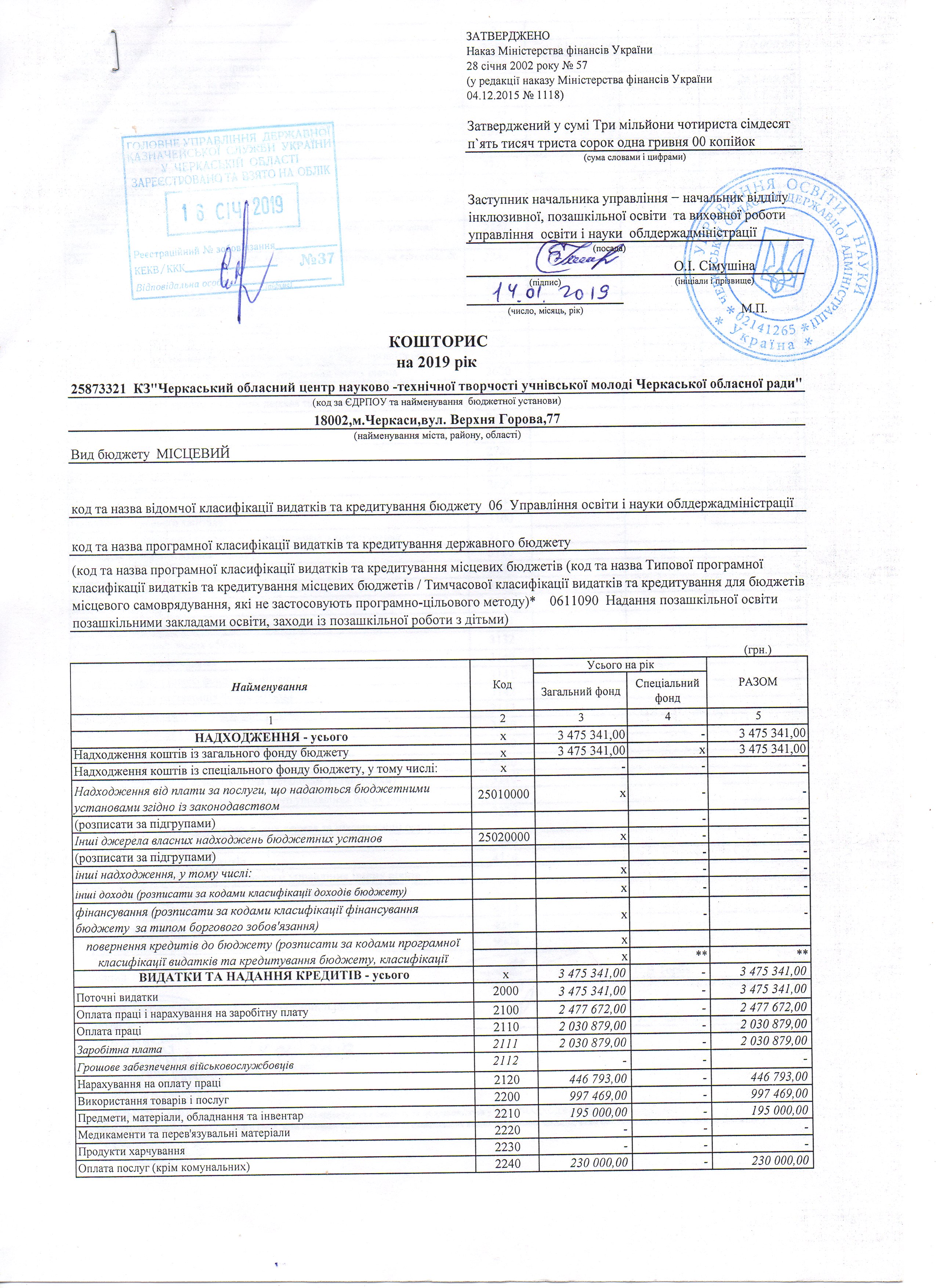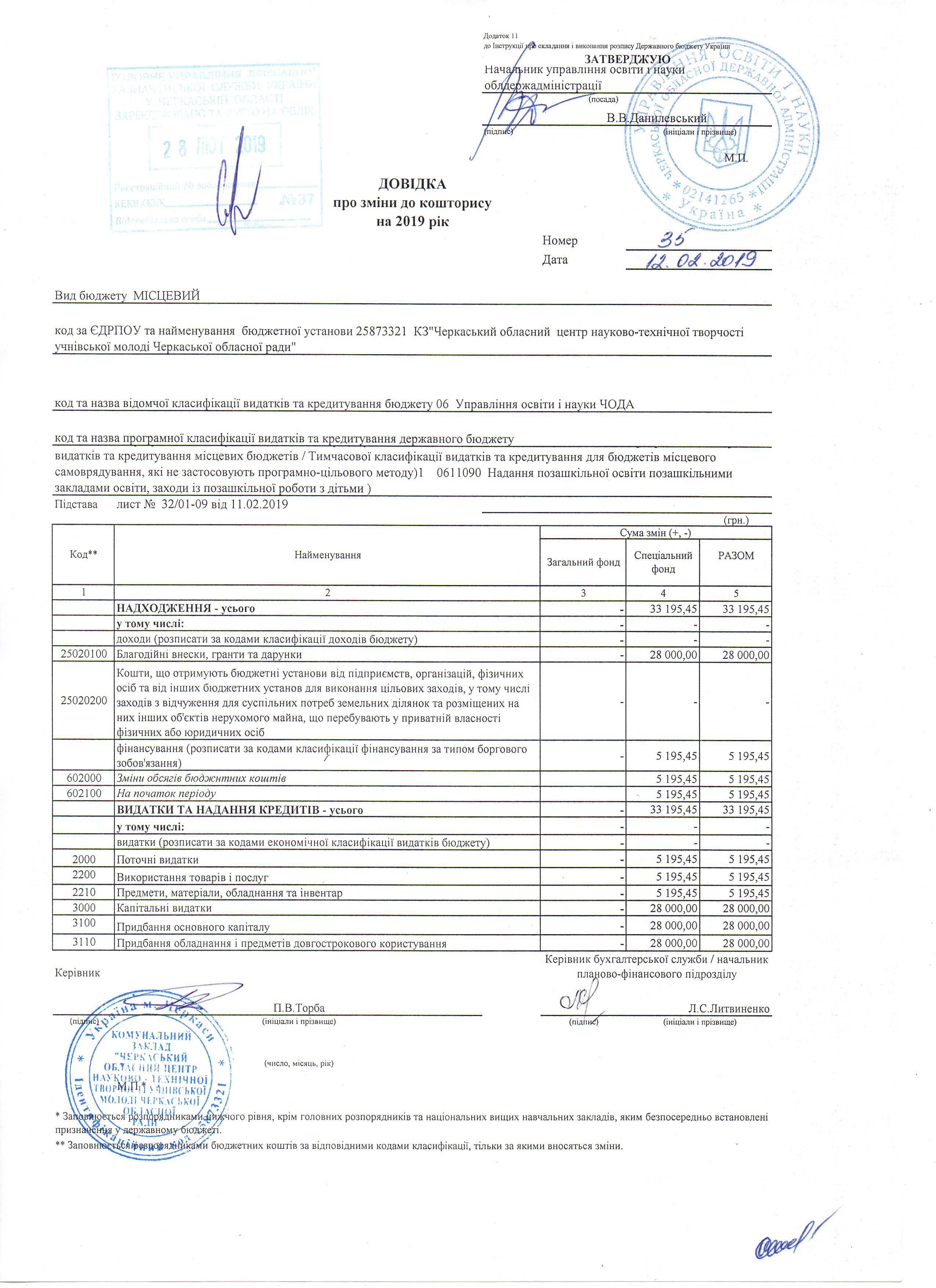 Довідка про зміни до кошторису на 2019 р
