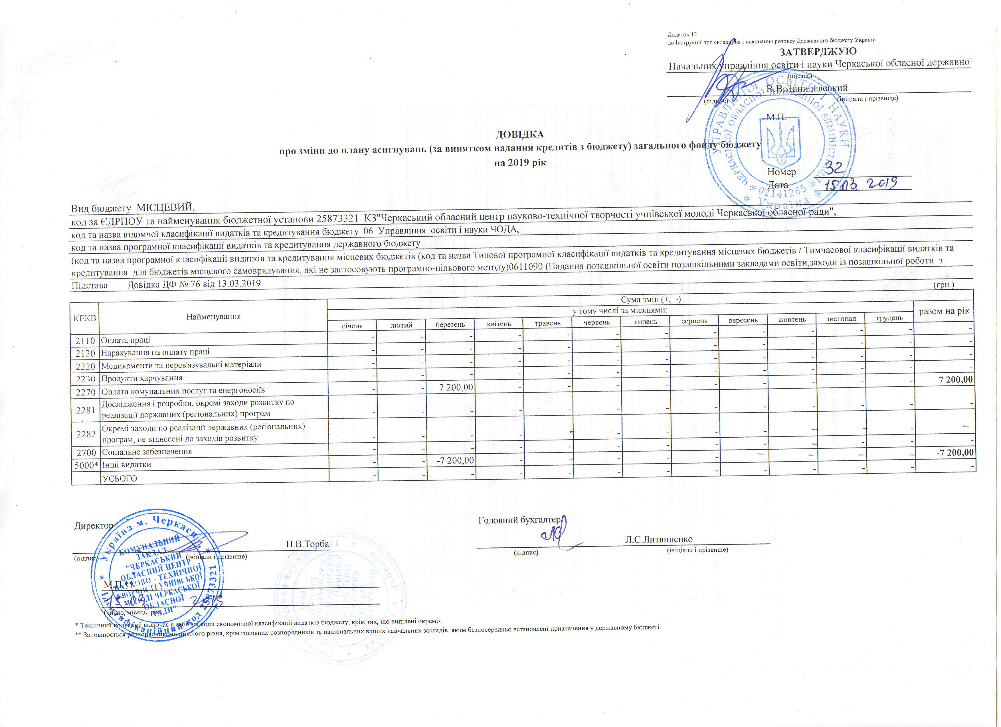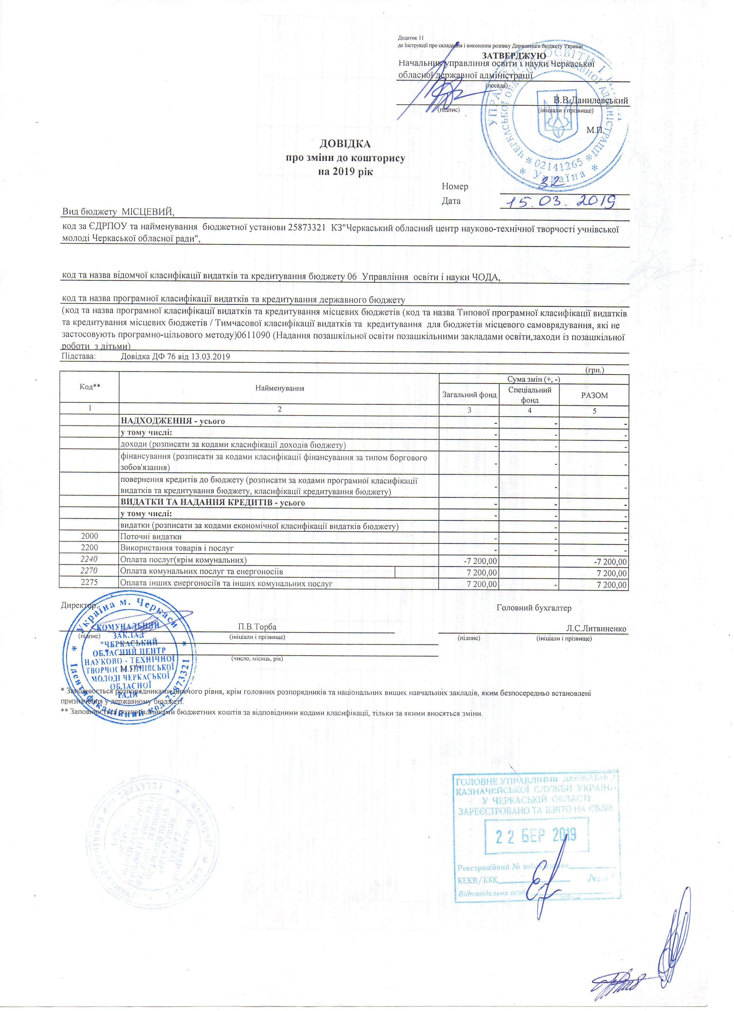 Довідка про зміни до кошторису на 2019р.