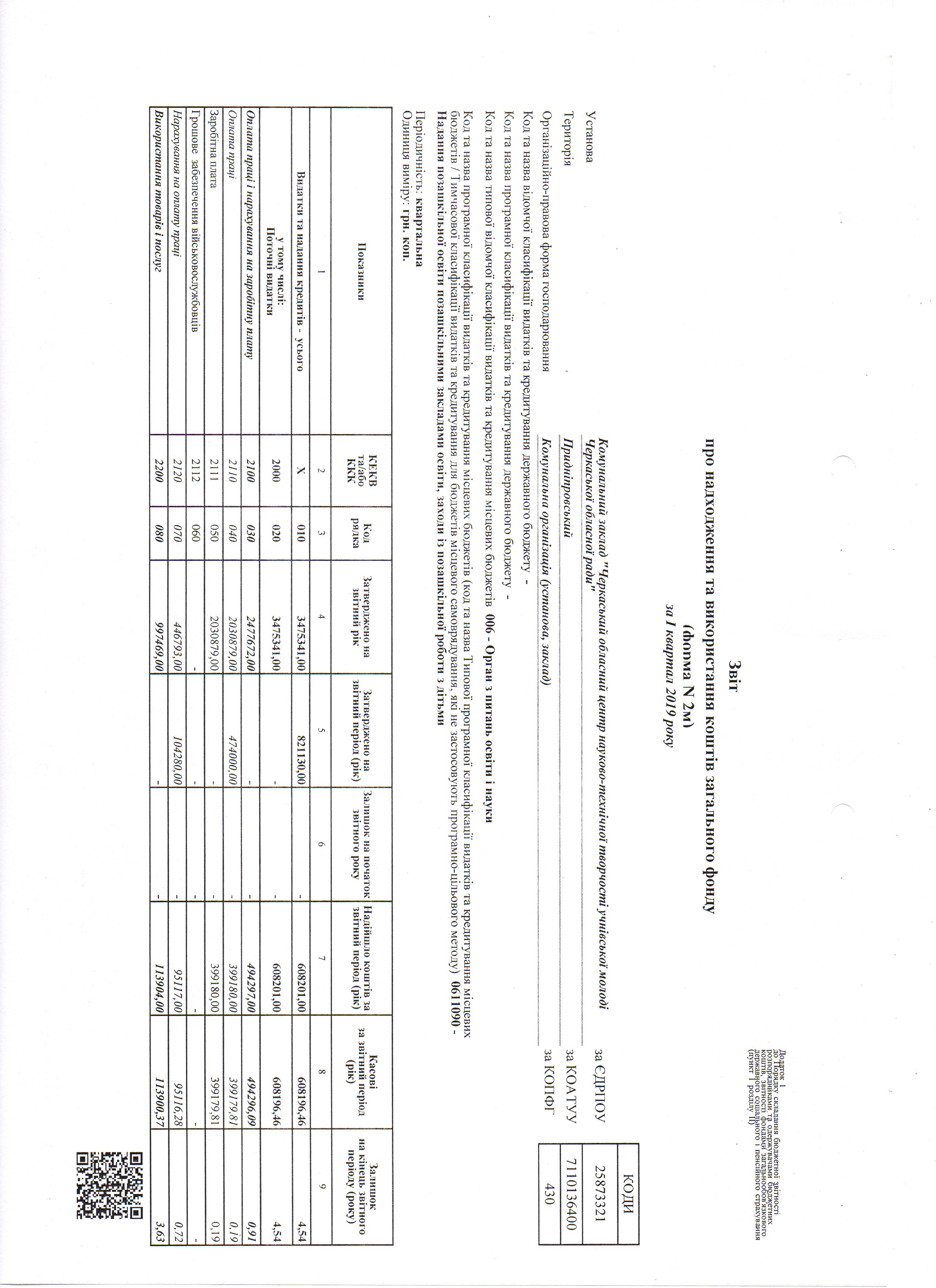 Звіт про надходження та використання коштів загального фонду (форма N 2м) за І квартал 2019р