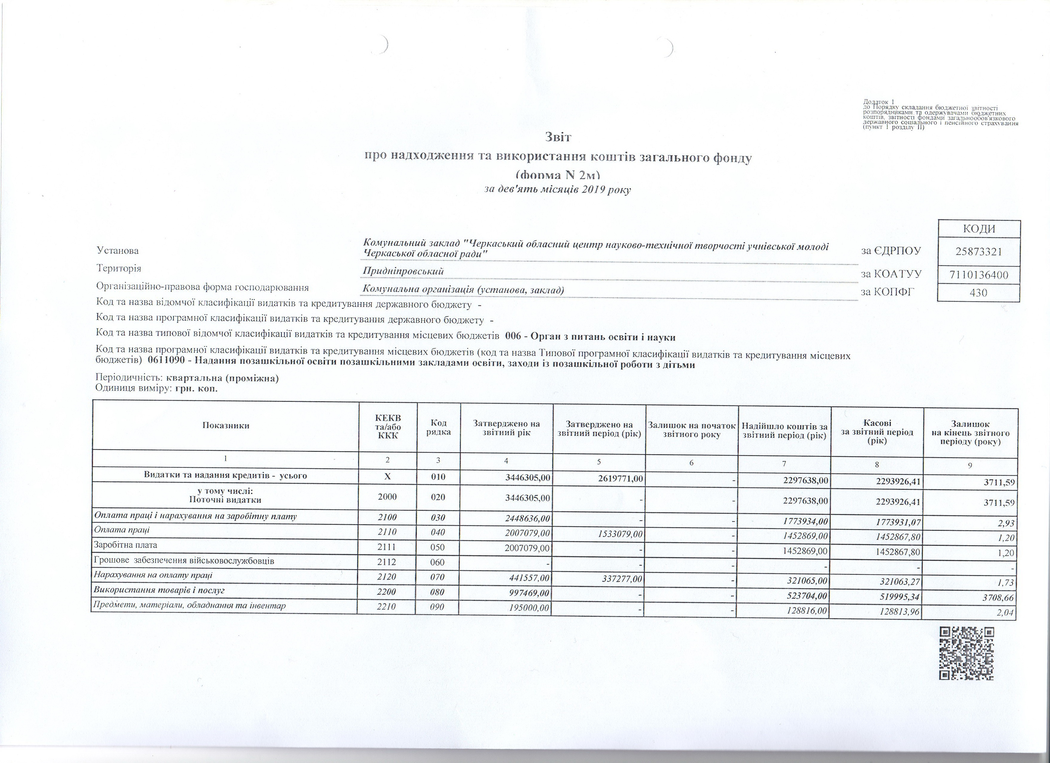 Звіт про надходження та використання коштів загального фонду (форма N2м)